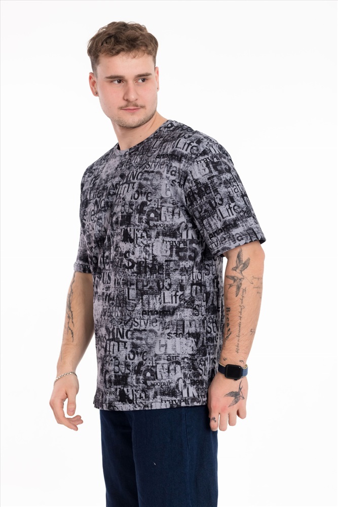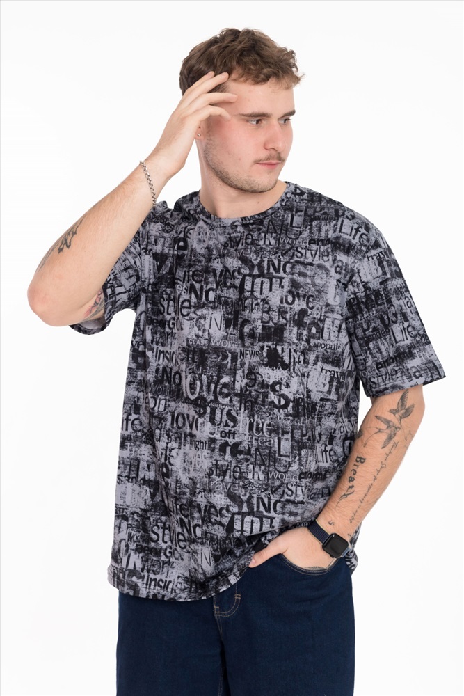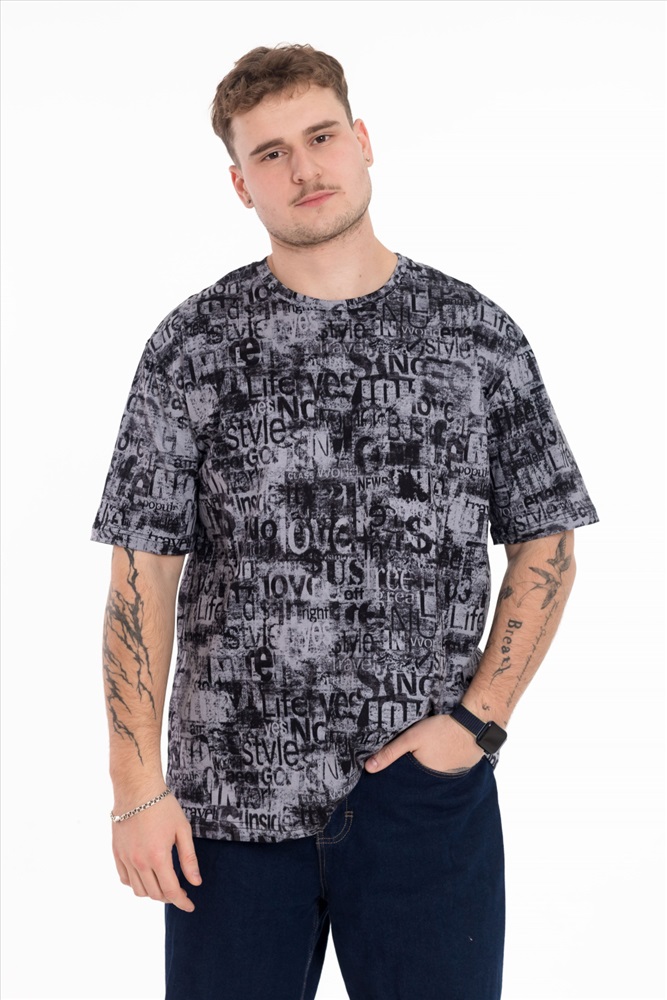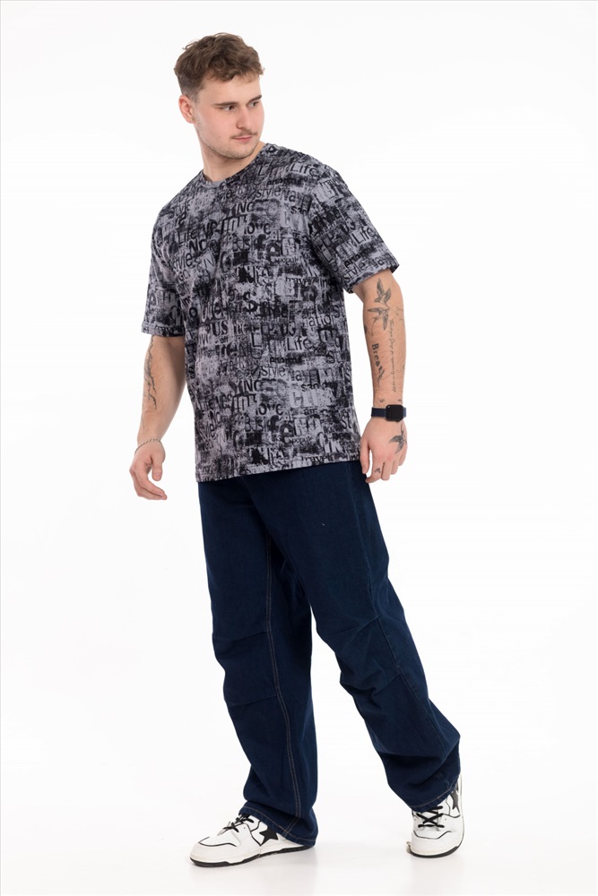 Мужская футболка выполнена из мягкого хлопкового полотна с набивным рисунком. Модель имеет прямой крой и слегка спущенный рукав, который обеспечивает комфортную посадку и современный силуэт. Круглая горловина оформлена в классическом варианте, что делает футболку универсальной и подходящей для повседневных образов. Легкая, удобная и практичная — она станет удачным выбором для ежедневной носки.