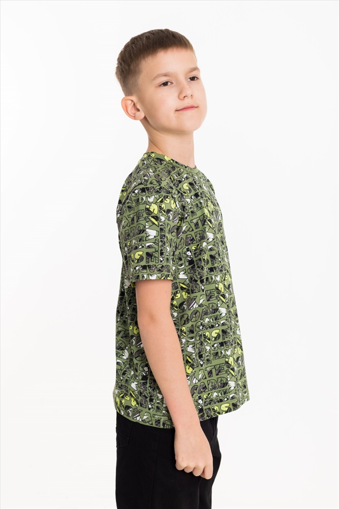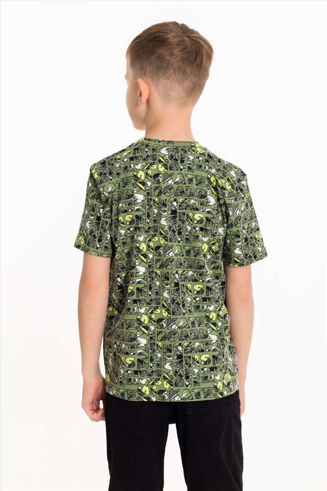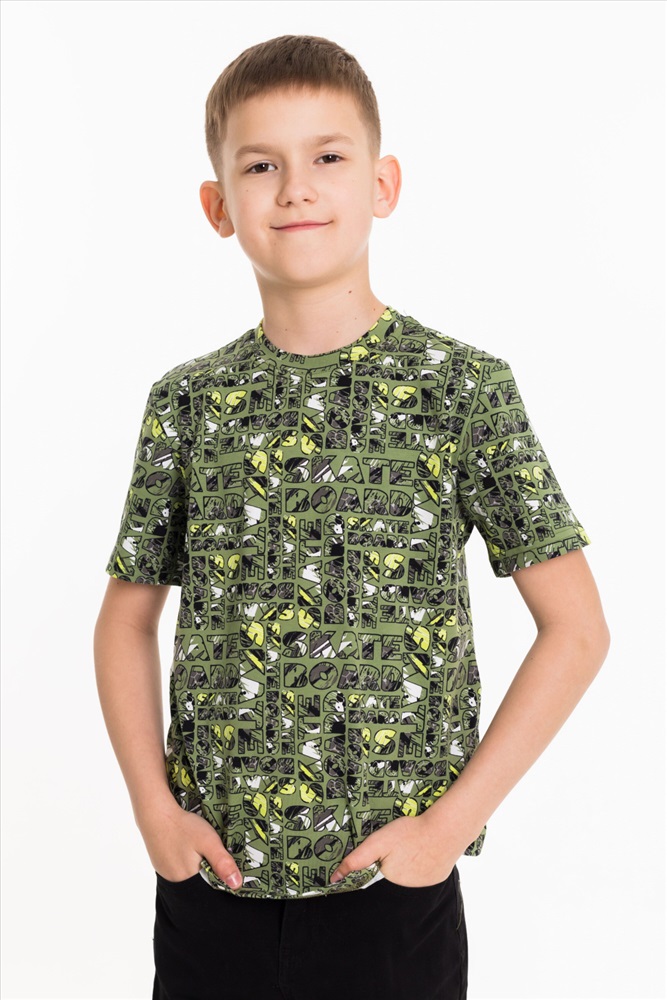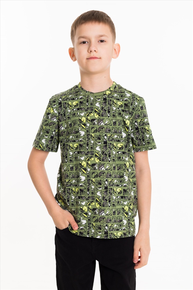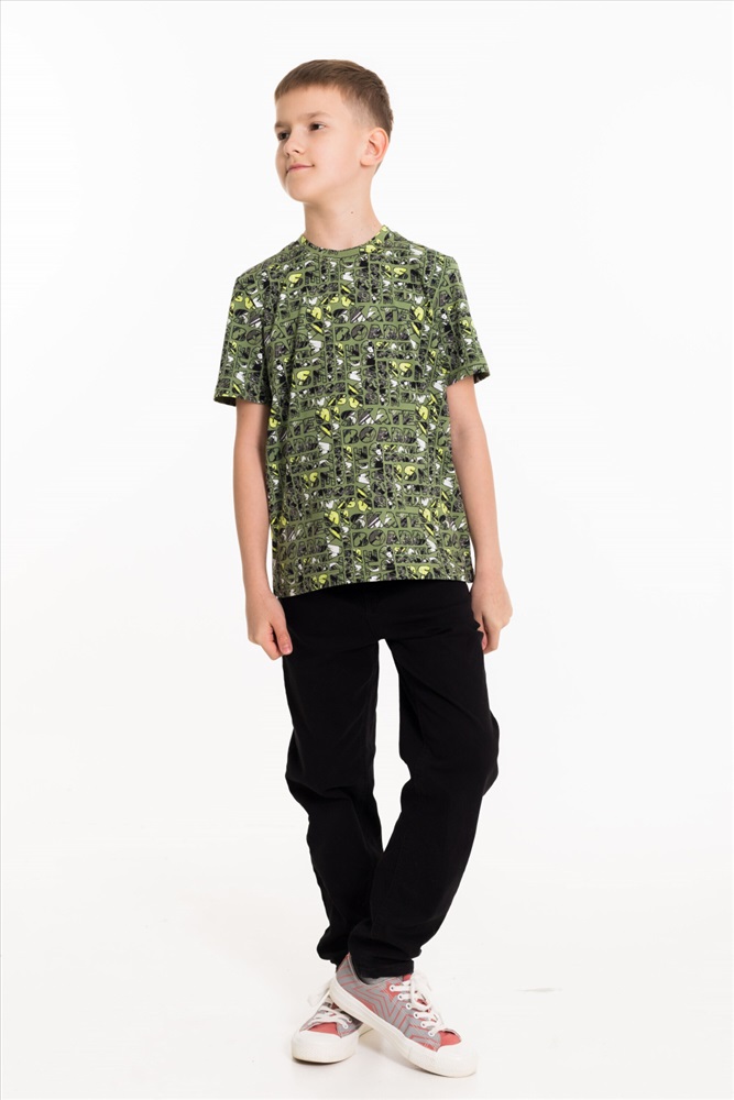 Сезон: Всесезонный Силуэт: Свободный Состав: Хлопок 92% Лайкра 8% Цвет Номенклатуры: хаки/черный Футболка из кулирки с лайкрой. С коротким рукавом и круглым вырезом горловины. Комментарии к товару