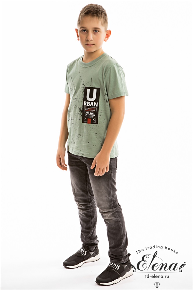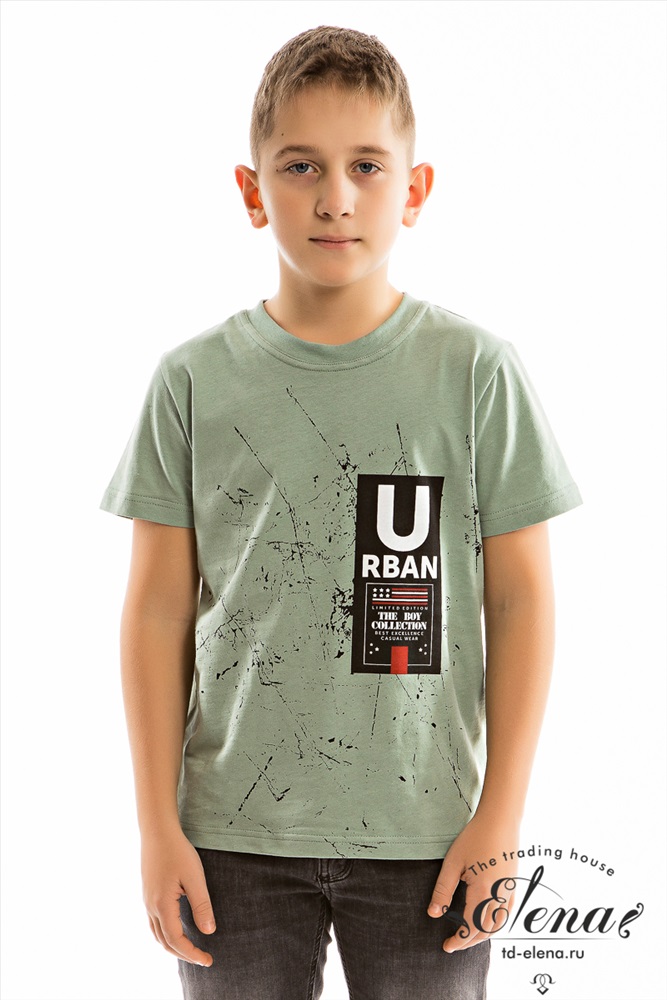 Цвет Номенклатуры: полынь Футболка выполнена из хлопкового полотна, с коротким рукавом и круглым вырезом горловины. Спереди нанесён принт.