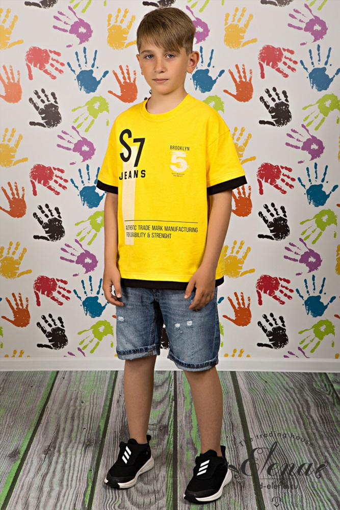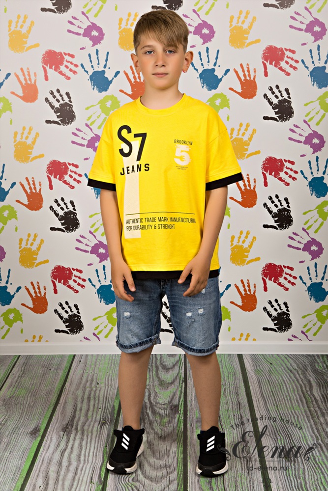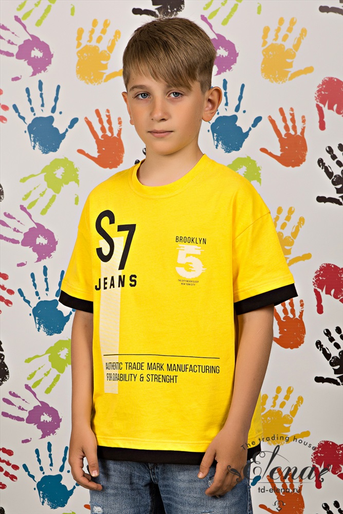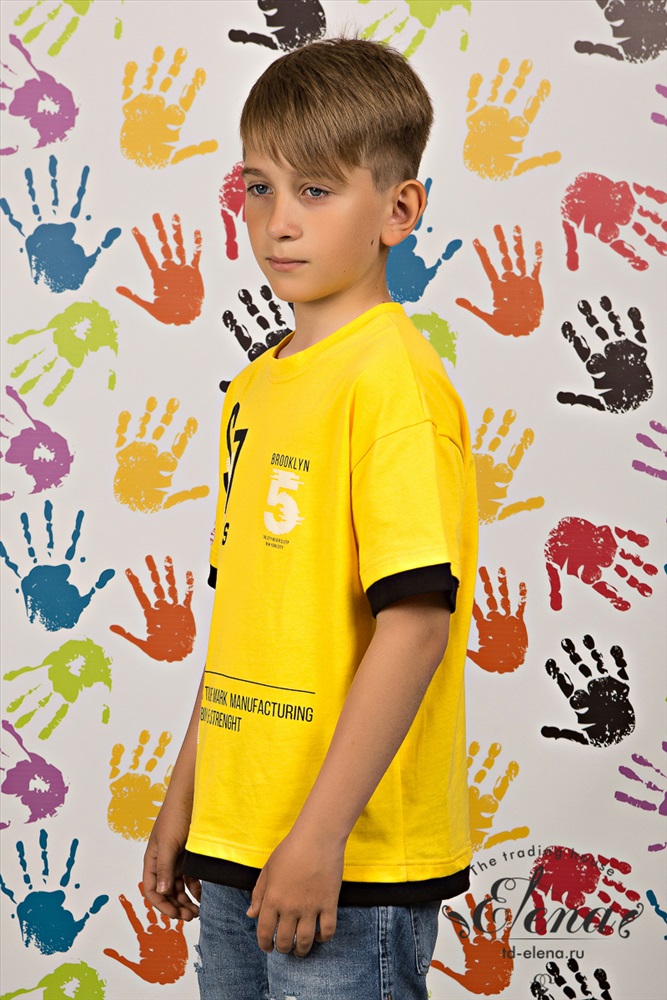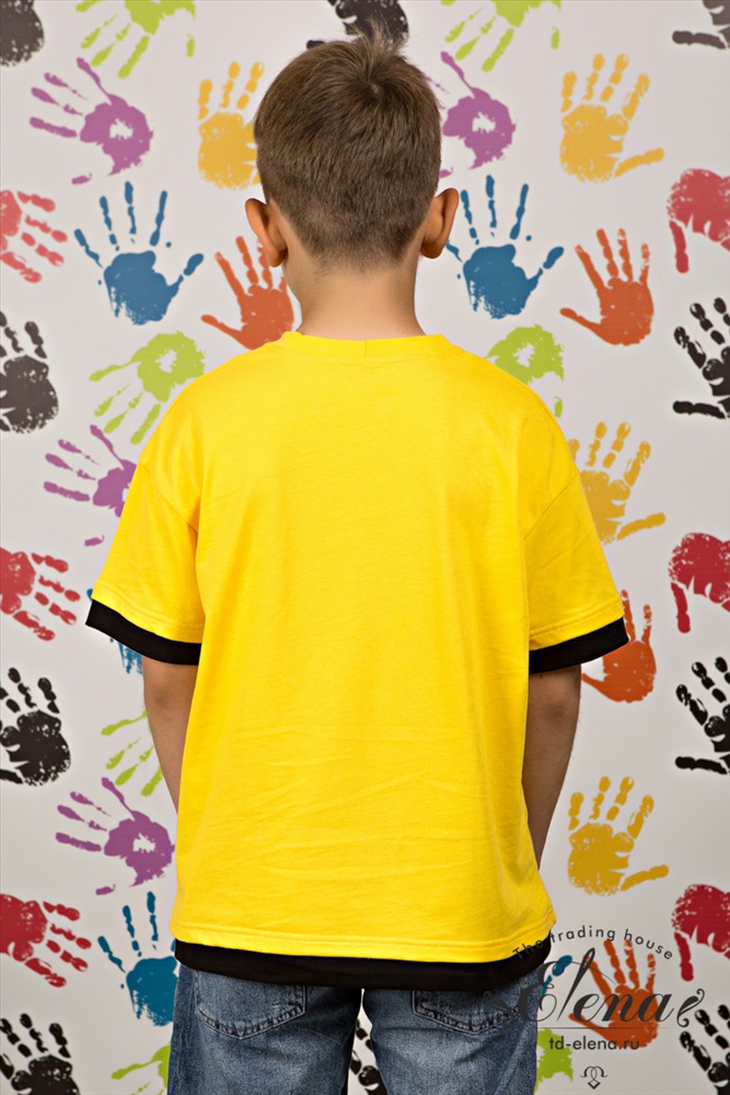 Сезон: Всесезонный Силуэт: Облегающий Состав: Хлопок 100% Цвет Номенклатуры: желтый Футболка выполнена из кулирки,100% хлопок с отделкой планками контрастного цвета. Со спущенным рукавом и круглым вырезом горловины. Спереди нанесён принт. Комментарии к товару