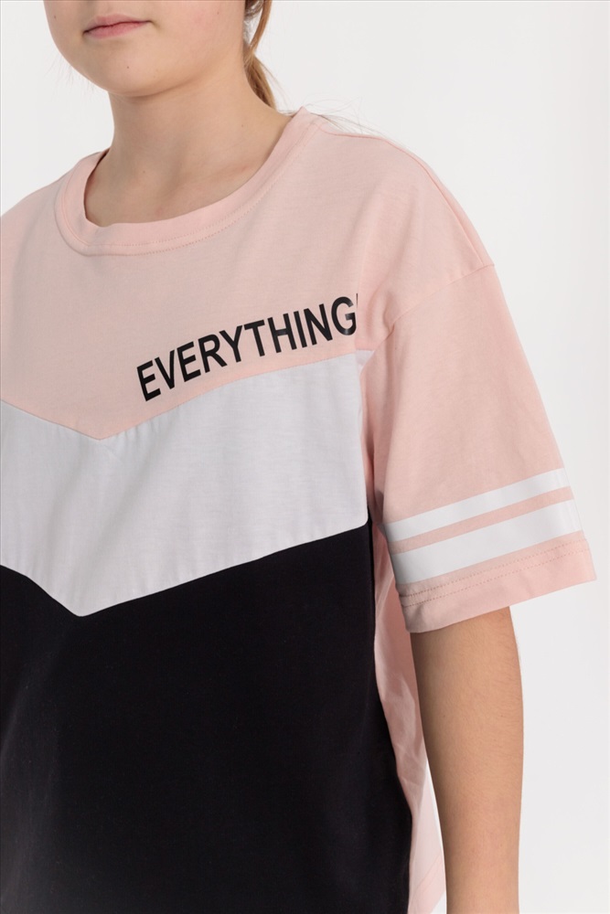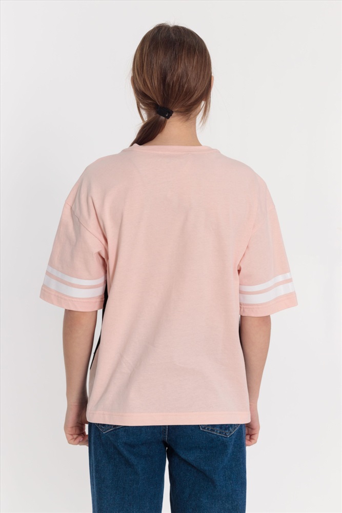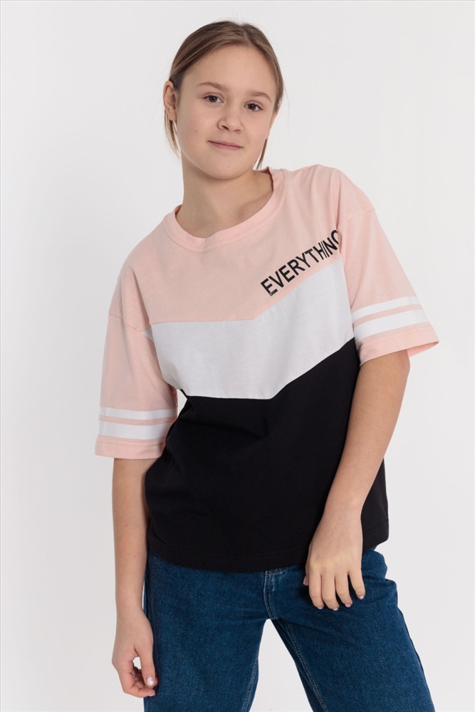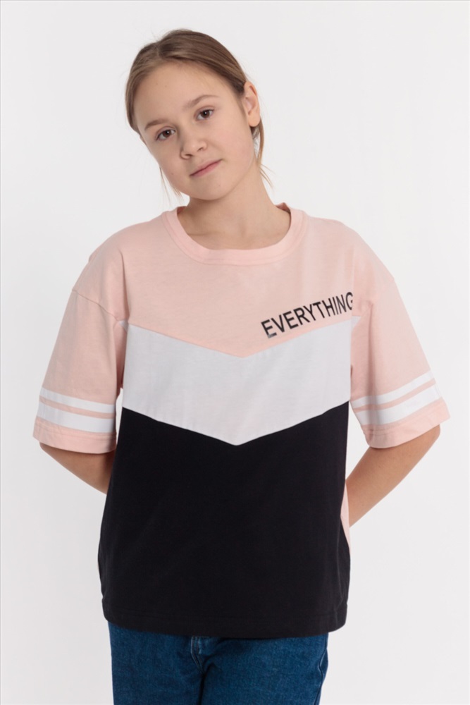 Сезон: Всесезонный Силуэт: Свободный Состав: Хлопок 100% Цвет Номенклатуры: розовый Футболка выполнена из хлопкового полотна, посадка с лёгким эффектом оверсайз. Футболка с коротким рукавом и круглым вырезом горловины, оформленным планкой. Спереди и на рукавах нанесён термопринт. Комментарии к товару