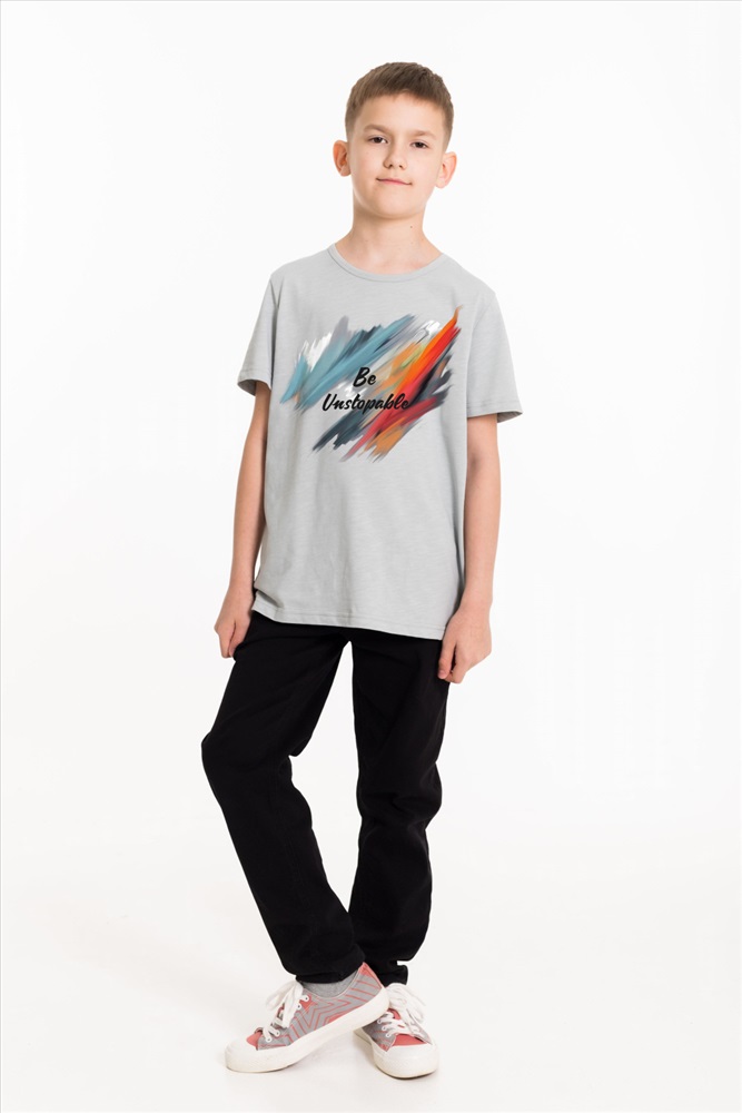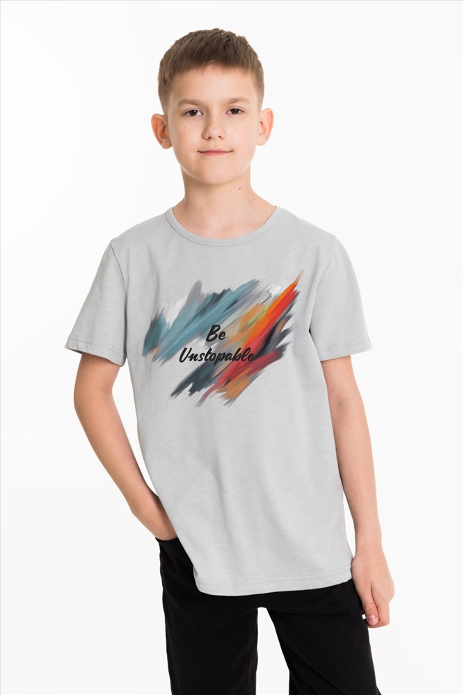 Сезон: Всесезонный Силуэт: Прямой Состав: Хлопок 100% Цвет Номенклатуры: серый Футболка выполнена из однотонной кулирки. Горловина с круглым вырезом, оформленным бейкой, спереди нанесен принт. Комментарии к товару
