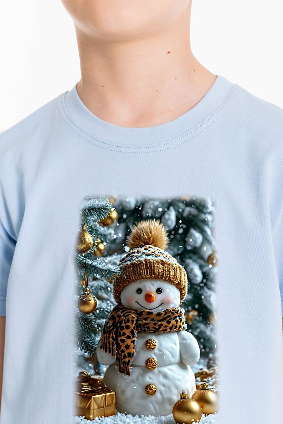 Футболка с новогодним принтом выполнена из хлопкового полотна с добавлением лайкры. Материал приятен к телу, создает комфорт и хорошую воздухопроницаемость. Классический крой с коротким рукавом и круглым вырезом горловины обеспечивает удобную посадку и свободу движений. Отличный выбор для создания праздничного настроения и комфортных повседневных образов.