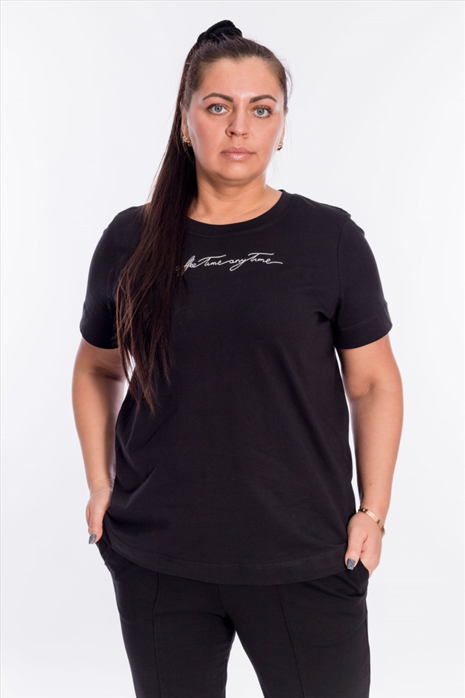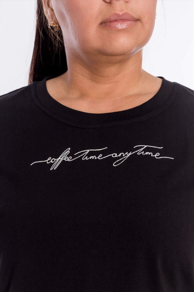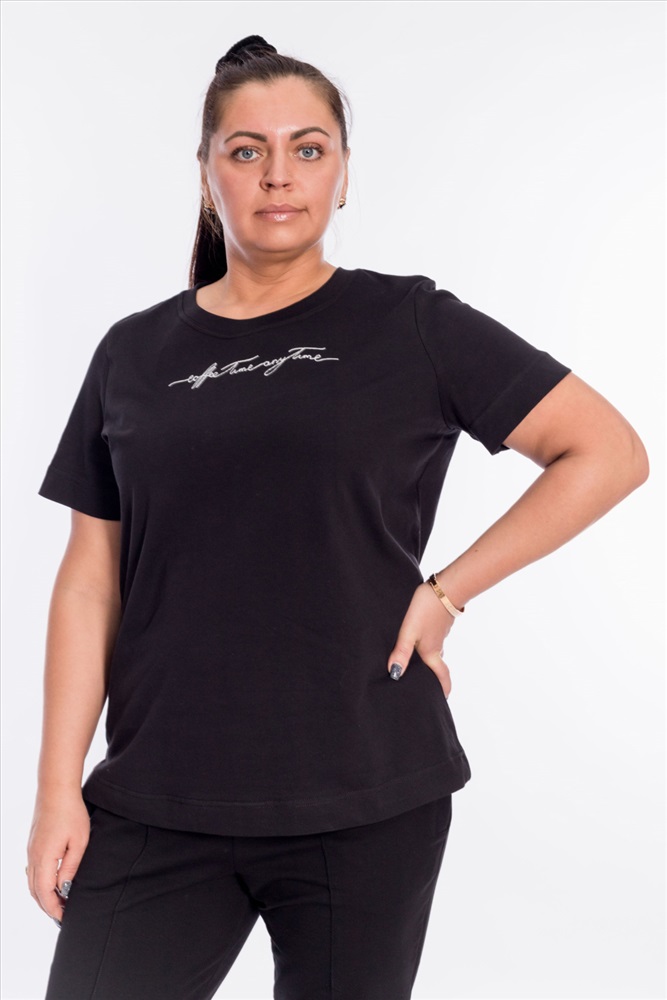 Сезон: Всесезонный Силуэт: Прямой Состав: Хлопок 100% Цвет Номенклатуры: черный Футболка из кулирки, 100%хлопок, с коротким втачным рукавом и притачной планкой по горловине. Спереди вышивка. Комментарии к товару