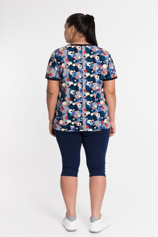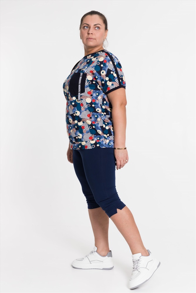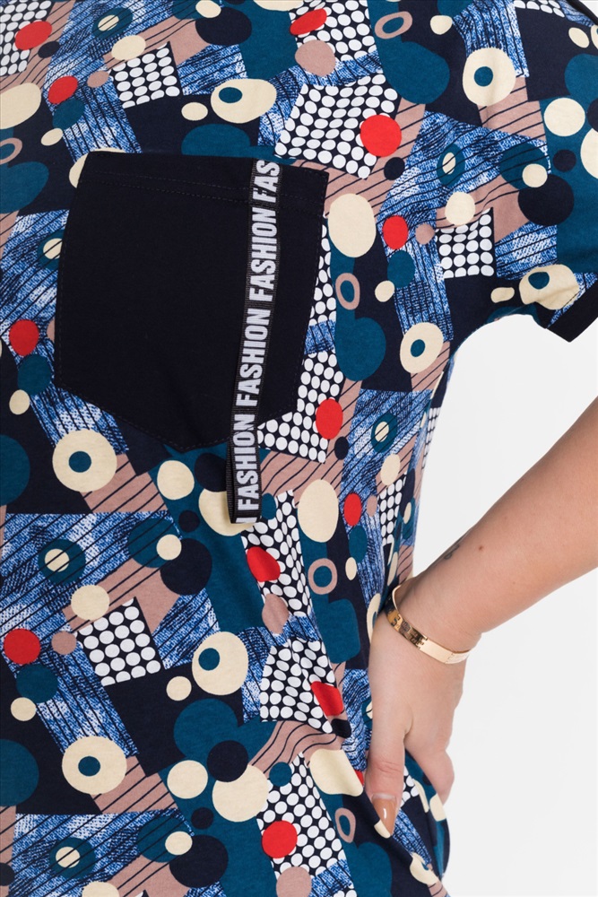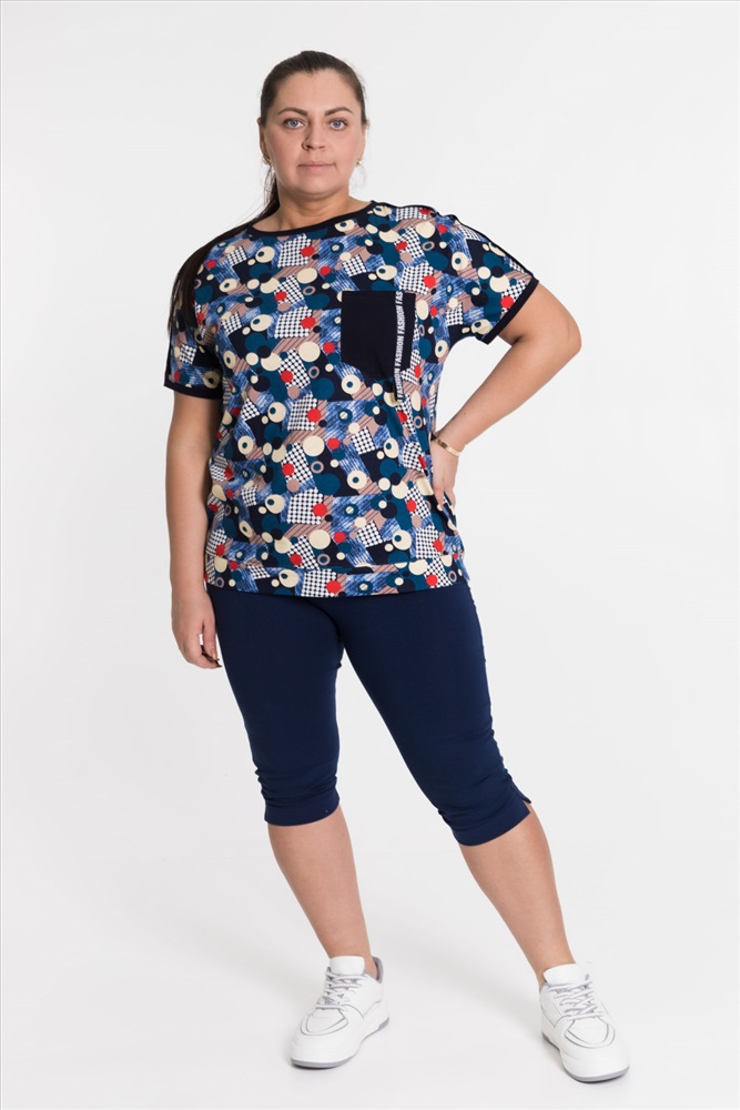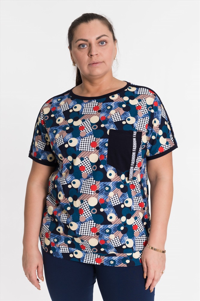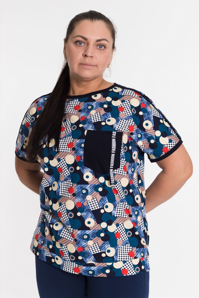 Сезон: Всесезонный Силуэт: Свободный Состав: Хлопок 100% Цвет Номенклатуры: синий Футболка выполнена из х/б полотна с набивным рисунком. Силуэт свободный, вырез горловины округлый. Спереди размещён нагрудный карман. Комментарии к товару