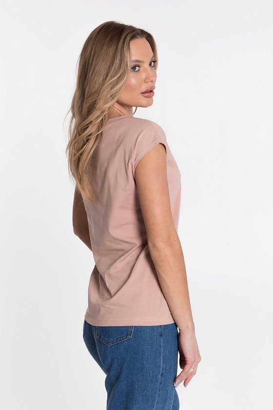 Вырез горловины лодочка, спущенный рукав. принт на полочке.