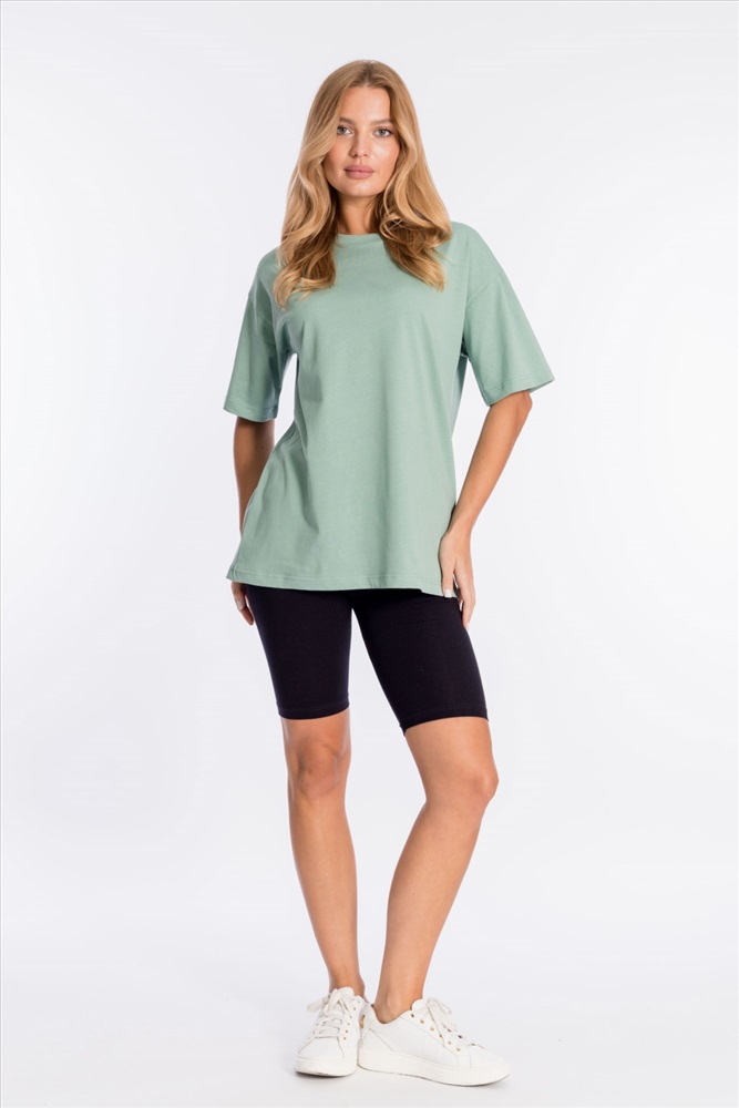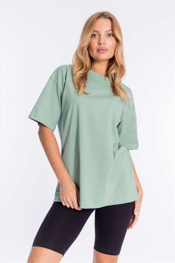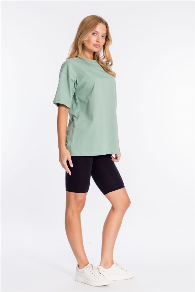 Сезон: Всесезонный Силуэт: Oversize Состав: Хлопок 100% Цвет Номенклатуры: полынь Футболка оверсайз из однотонной кулирки, 100% хлопок. С коротким рукавом и круглым вырезом горловины. Комментарии к товару