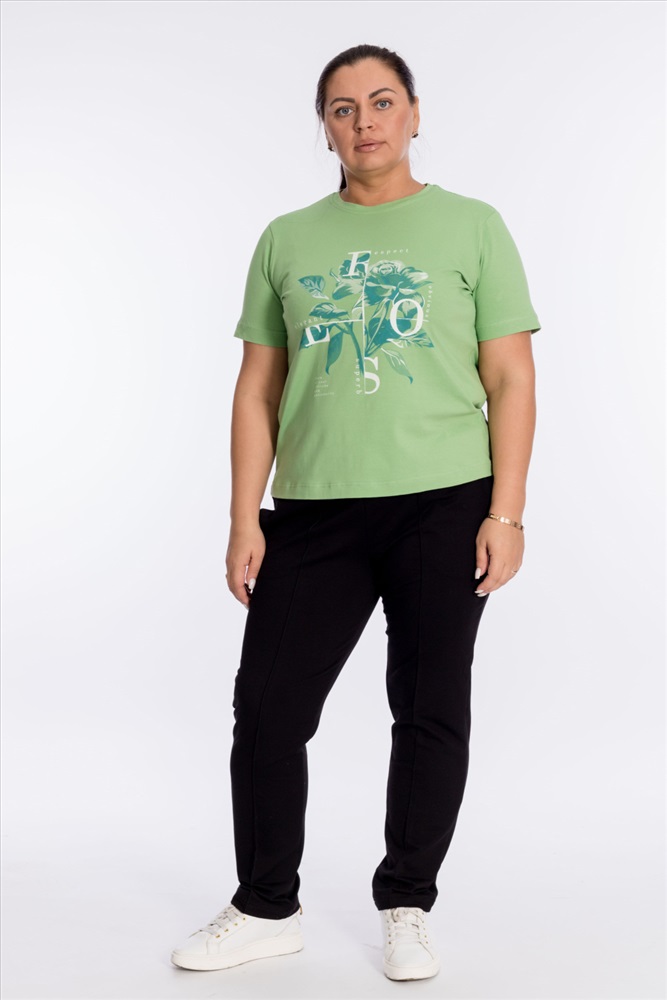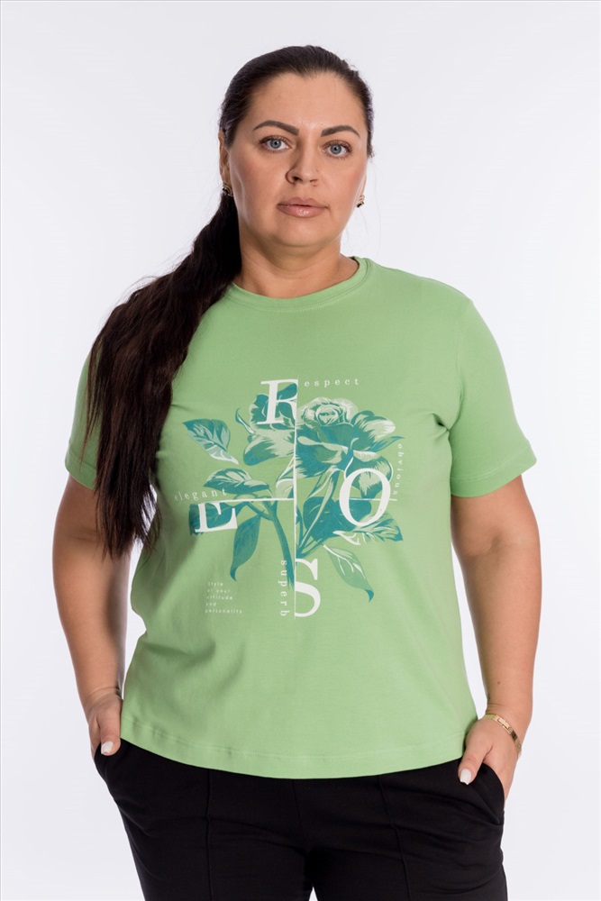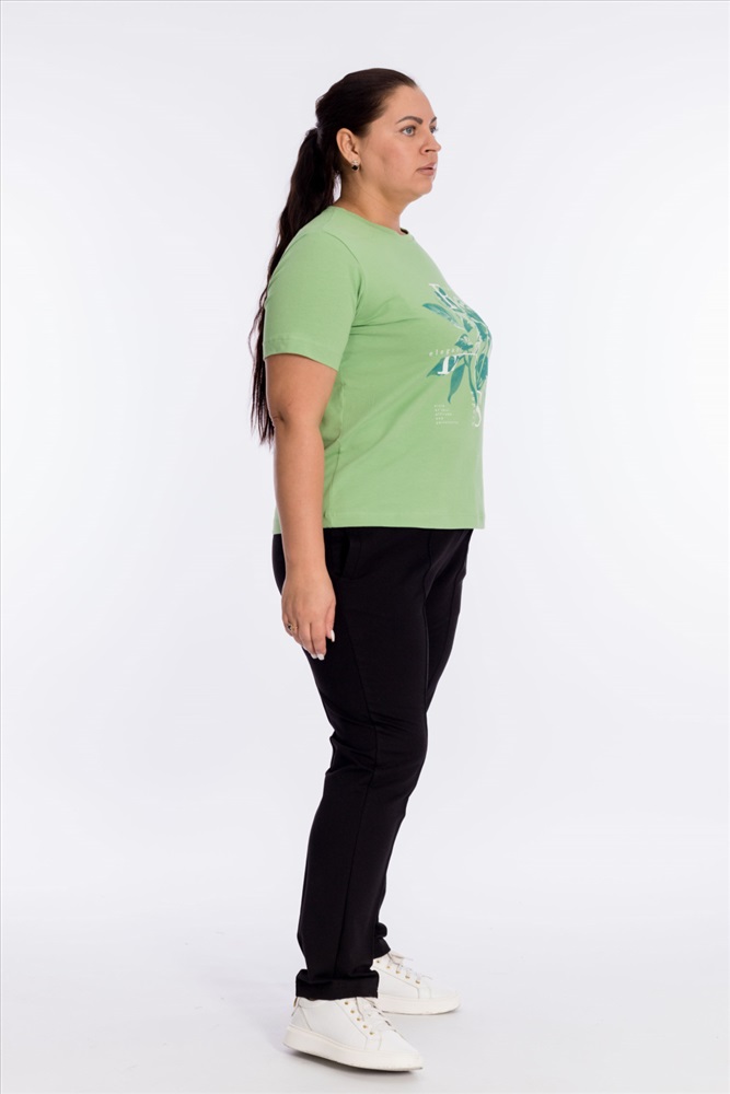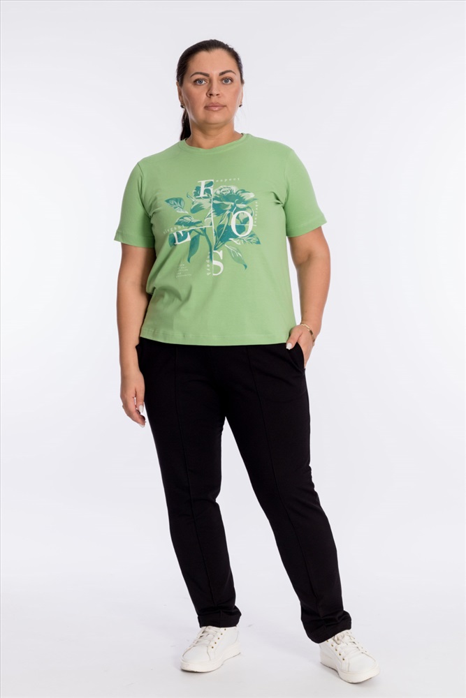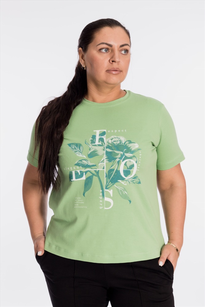 Сезон: Всесезонный Силуэт: Облегающий Состав: Хлопок 95% Лайкра 5% Цвет Номенклатуры: зеленый Женская футболка полуприлегающего силуэта выполнена из однотонной кулирки с лайкрой. С коротким рукавом и круглым вырезом горловины, оформленным планкой. Спереди нанесён принт. Комментарии к товару