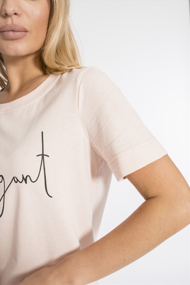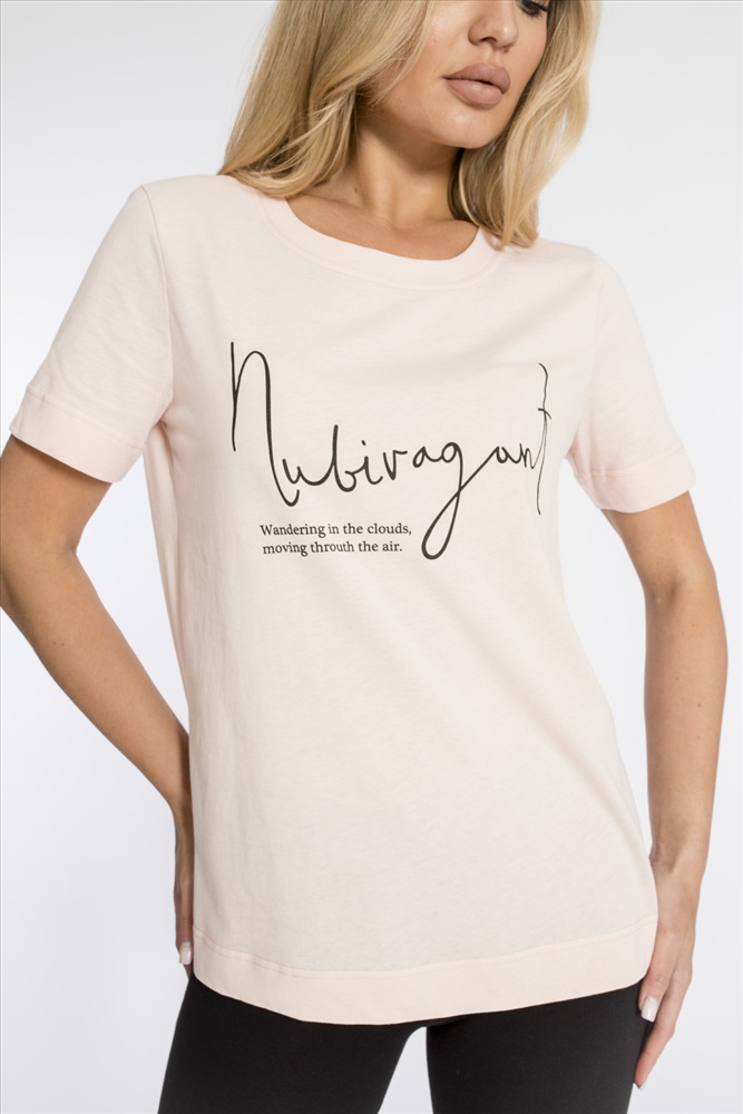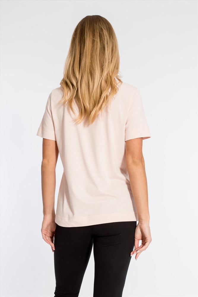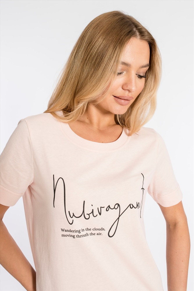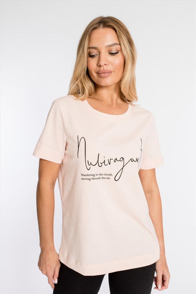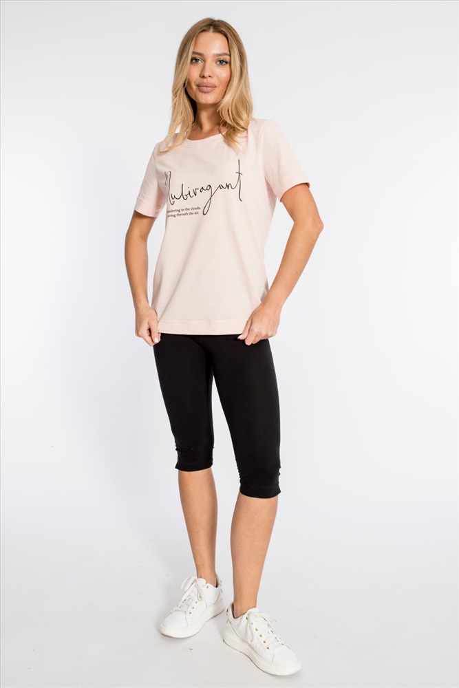 Сезон: Всесезонный Силуэт: Свободный Состав: Хлопок 100% Цвет Номенклатуры: розовый Футболка из однотонной кулирки, 100% хлопок. С коротким втачным рукавом и притачной планкой по круглому вырезу горловины. Спереди нанесён принт. Комментарии к товару