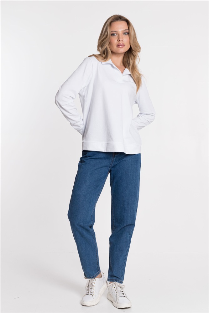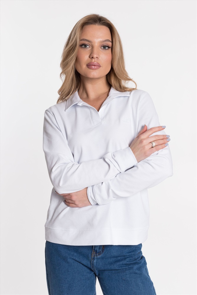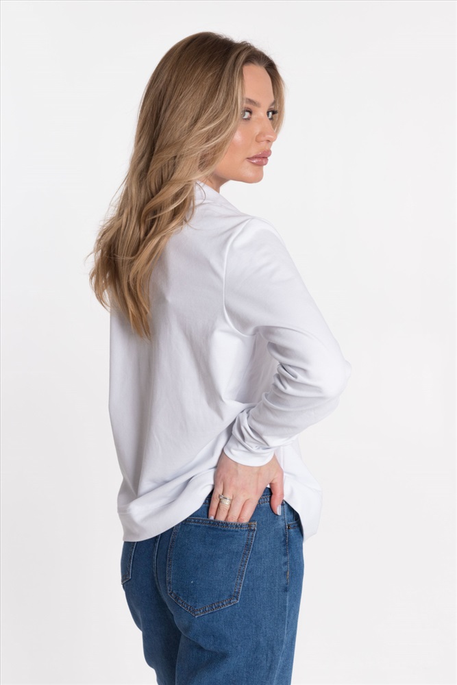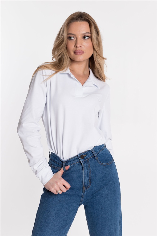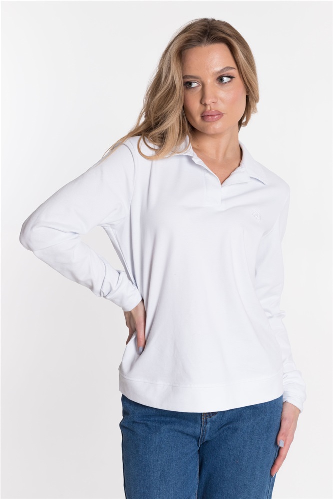 Сезон: Всесезонный Силуэт: Свободный Состав: Хлопок 100% Цвет Номенклатуры: белый Футболка с длинным рукавом выполнена из полотна "пике". На полочке расположена вышивка, низ футболки оформлен притачным поясом. Комментарии к товару