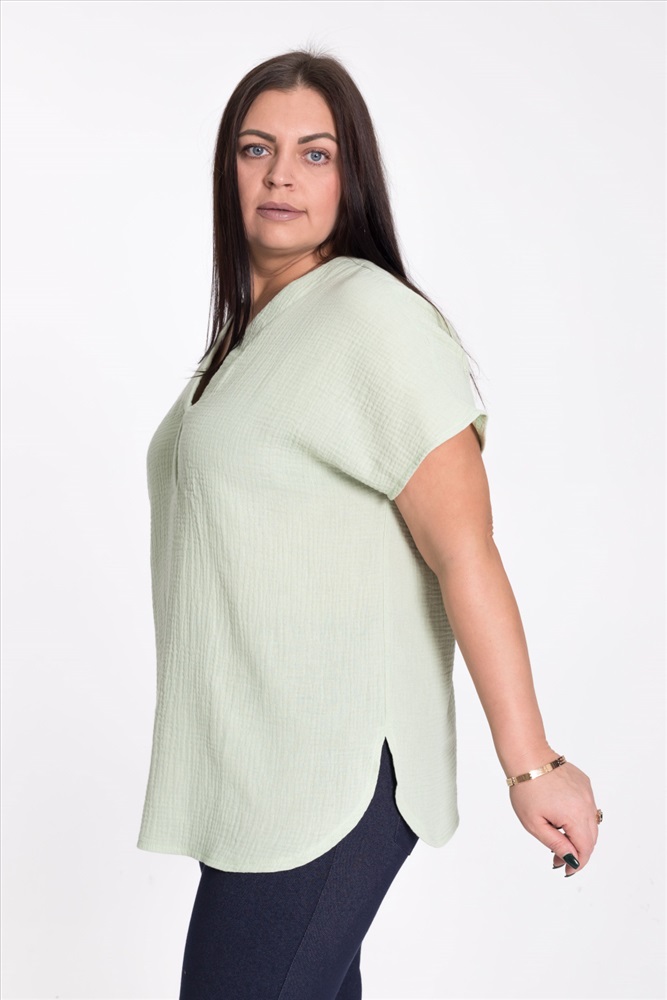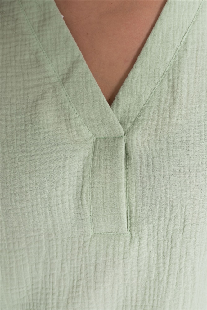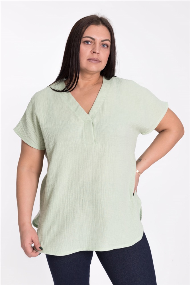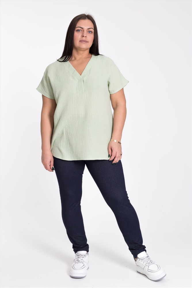 Сезон: Летний Силуэт: Свободный Состав: Хлопок 100% Цвет Номенклатуры: полынь Женская футболка выполнена из мягкого и лёгкого муслина цвета полынь. Она имеет V-образный вырез горловины, что придаёт изделию элегантность и женственность. Футболка оснащена цельнокроеным коротким рукавом, который обеспечивает свободу движений. Боковые срезы линии низа закруглены, что добавляет изделию мягкость и комфорт. Однотонный цвет футболки позволяет сочетать её с различными элементами гардероба. Эта футболка станет отличным выбором для повседневной носки, обеспечивая удобство и стиль. Комментарии к товару