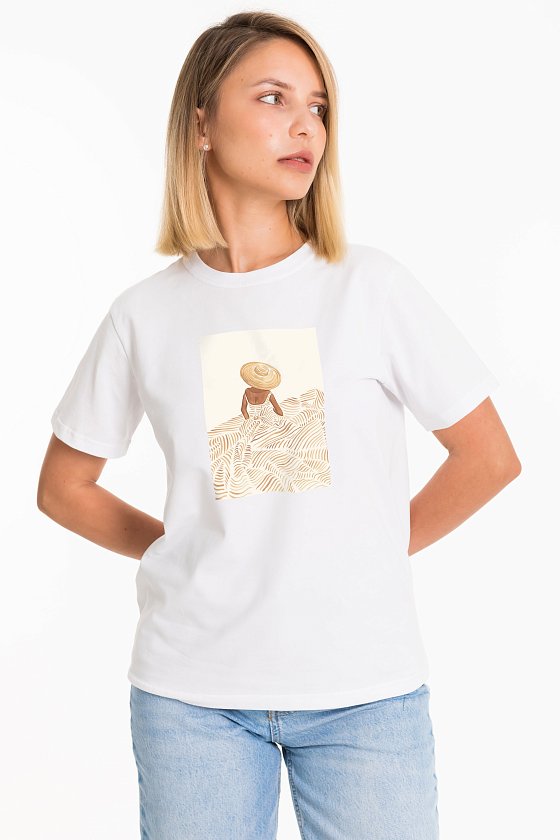 Женская футболка изготовлена из хлопкового полотна с добавлением лайкры, что обеспечивает комфорт и хорошую воздухопроницаемость. Футболка имеет короткий втачной рукав и круглый вырез горловины, что придает ей классический стильный вид. Такая модель базового однотонного белого цвета отлично сочетается с джинсами, брюками или юбкой. Изготовленная из натуральной ткани, футболка обеспечит комфорт в течение всего дня.