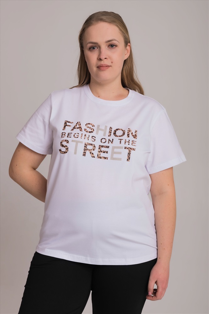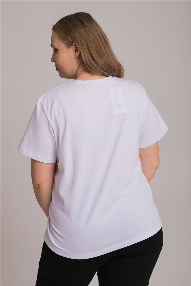 Цвет Номенклатуры: белый Женская футболка с принтом спереди изготовлена из хлопкового полотна с добавлением лайкры. Футболка с коротким втачным рукавом и круглым вырезом горловины, что придает ей классический стильный вид. Такая модель футболки отлично сочетается с джинсами, брюками или юбкой. Изготовленная из натуральной ткани, футболка обеспечит комфорт в течение всего дня.