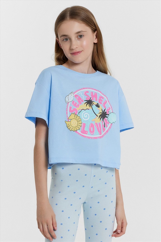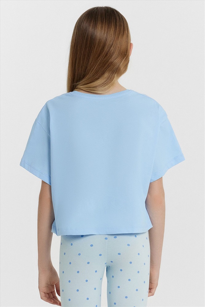Укороченная футболка свободного силуэта из трикотажной кулирки. Пройма спущена, что дарит свободу движений. Рукава короткие. Горловина круглой формы. Идеально для шортиков или брюк с высокой посадкой!