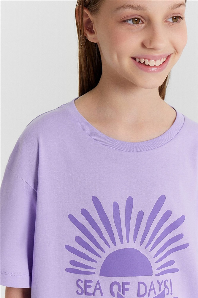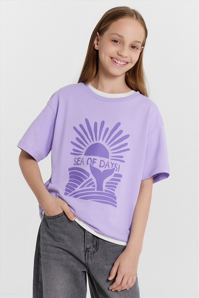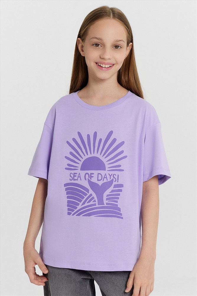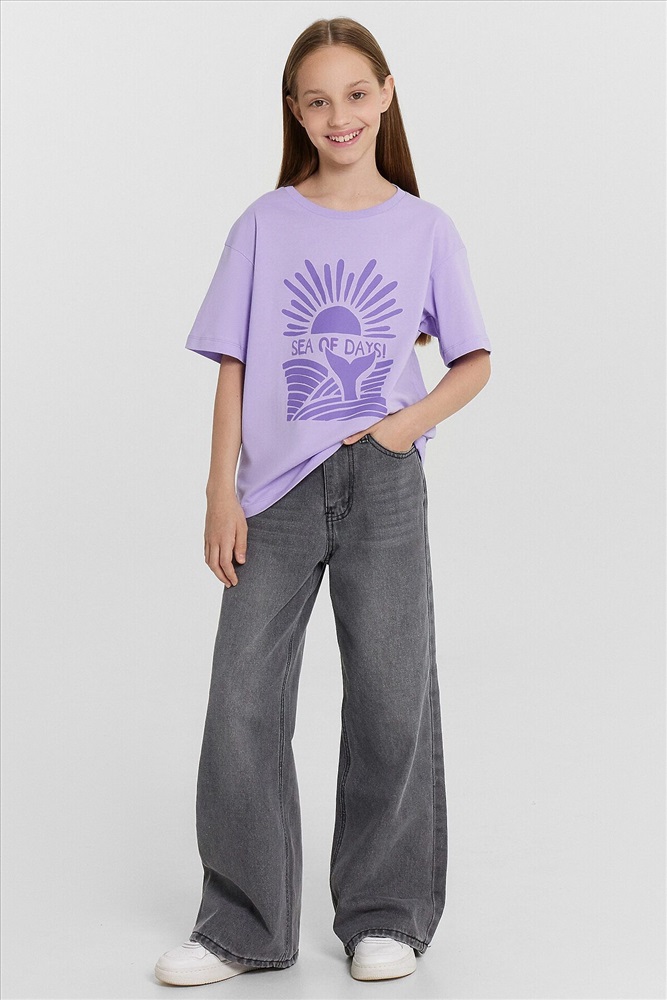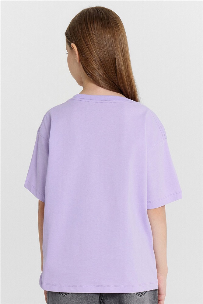 Эта стильная футболка для девочек идеально подходит для создания многослойных образов. Модель прямого кроя с короткими рукавами, спущенной линией плеча и круглой горловиной обеспечивает свободу движений и комфорт. Изделие выполнено из кулирки — мягкого трикотажного материала, который обладает гладкой поверхностью и природной воздухопроницаемостью. Этот материал прекрасно пропускает воздух, позволяя коже дышать, и обеспечивает высокий уровень комфорта, не стесняя движений. Кулирка также хорошо держит форму и сохраняет цвет даже после многочисленных стирок, что делает изделие долговечным. Такая футболка станет универсальным элементом гардероба, подходящим для любого сезона.