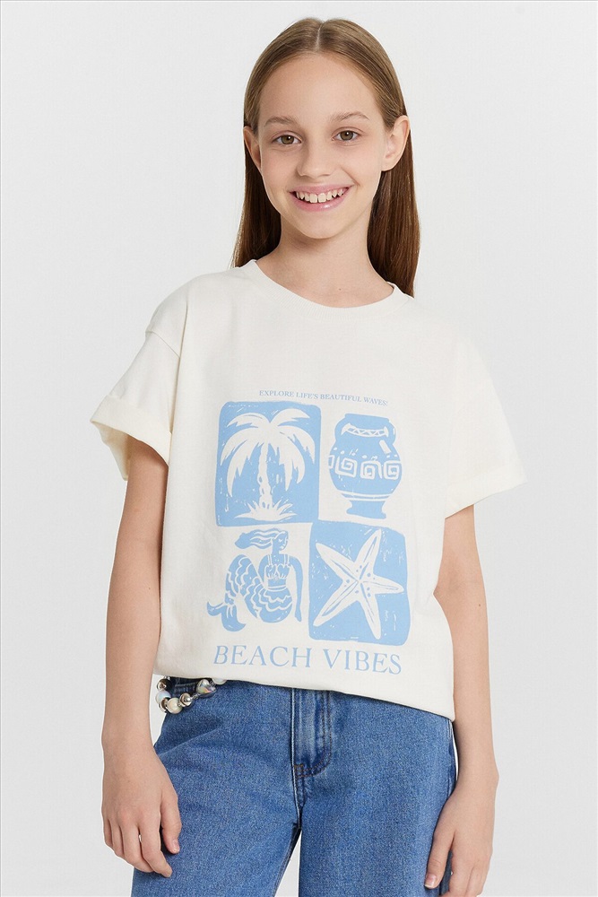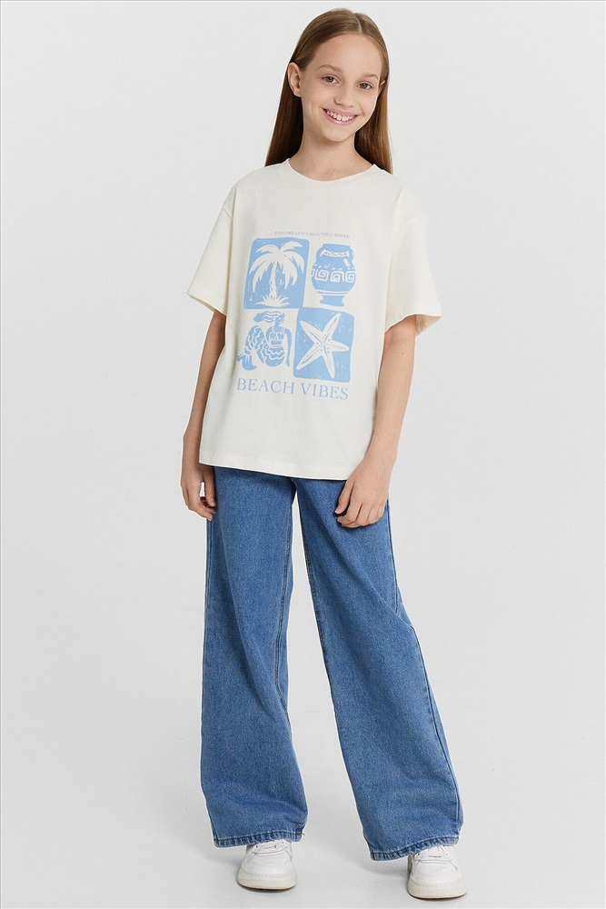 Эта стильная футболка для девочек идеально подходит для создания многослойных образов. Модель прямого кроя с короткими рукавами, спущенной линией плеча и круглой горловиной обеспечивает свободу движений и комфорт. Изделие выполнено из кулирки — мягкого трикотажного материала, который обладает гладкой поверхностью и природной воздухопроницаемостью. Этот материал прекрасно пропускает воздух, позволяя коже дышать, и обеспечивает высокий уровень комфорта, не стесняя движений. Кулирка также хорошо держит форму и сохраняет цвет даже после многочисленных стирок, что делает изделие долговечным. Такая футболка станет универсальным элементом гардероба, подходящим для любого сезона.