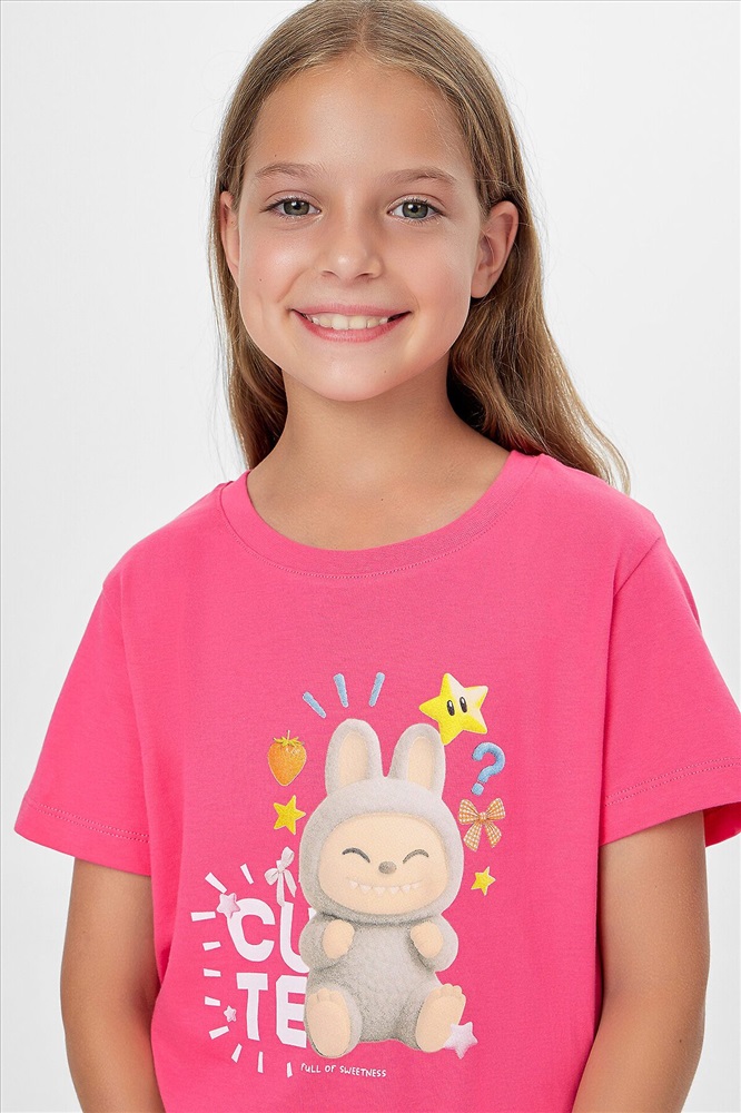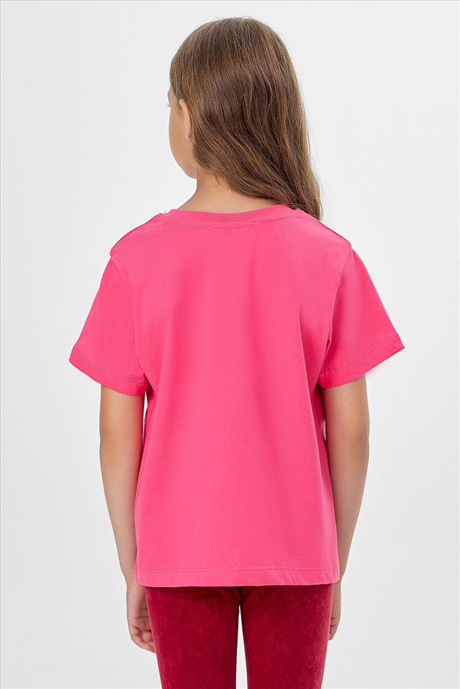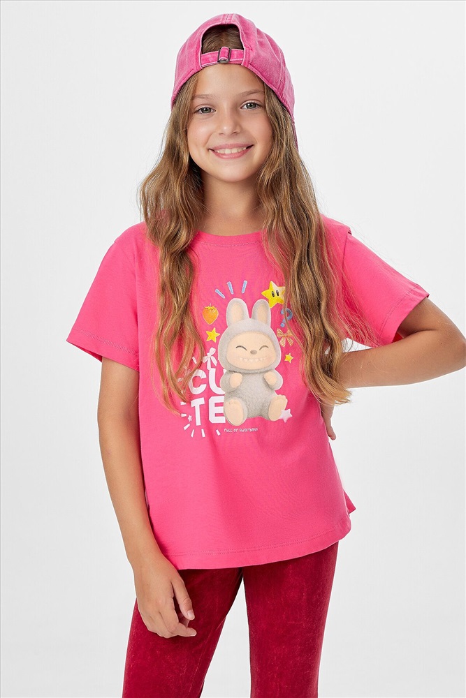Модная футболка для девочек, выполненная из хлопковой трикотажной кулирки. Силуэт прямой. Перед и спинка без швов и рельефов. Рукава короткие, вырез классический – круглый, не глубокий. Стильная футболка с ярким дизайном!