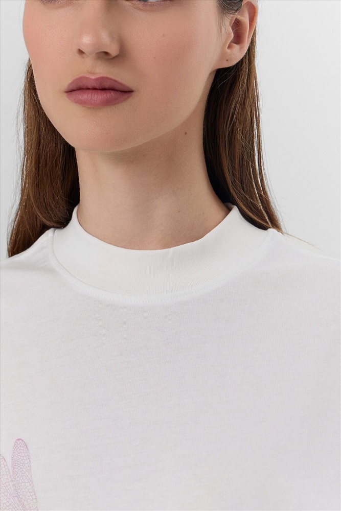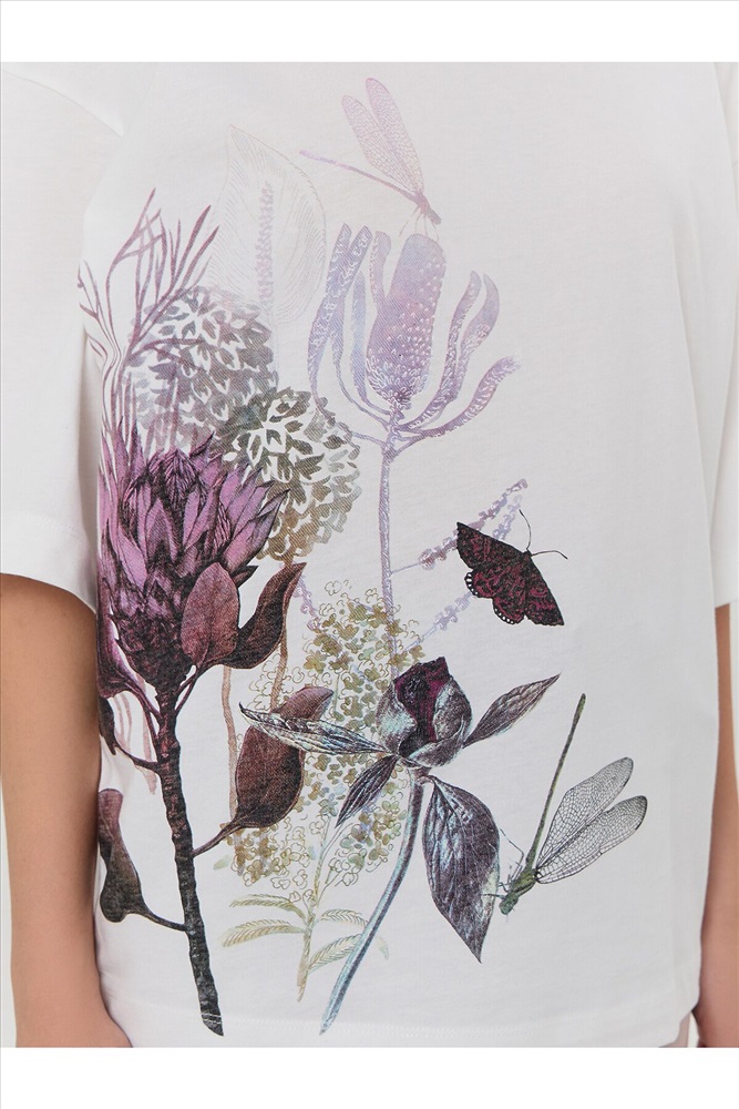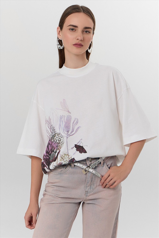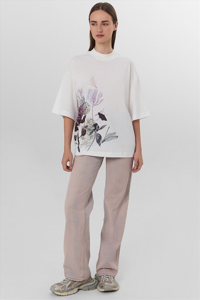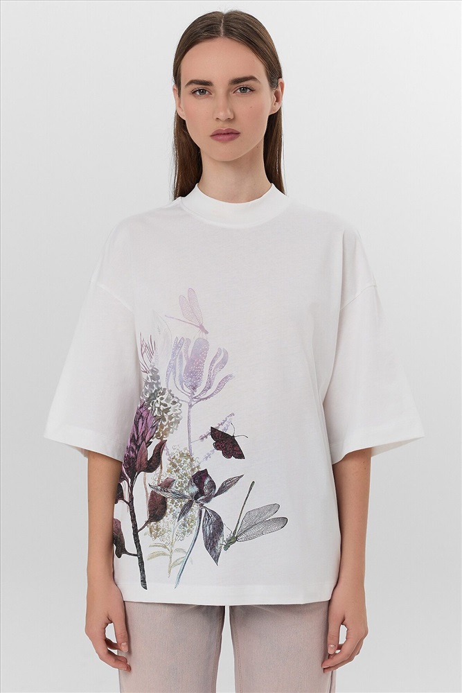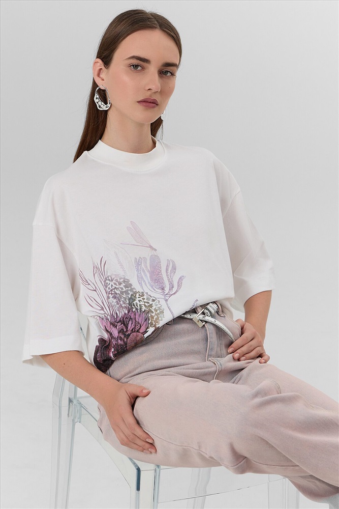 ID товара: 1215906 Состав: 100% Хлопок Сезон: Демисезон Длина: Средняя Фасон: Свободный Рукав: короткие Вид застежки: Без застежки Вырез горловины: Округлый Рисунок: цветочный Тип карманов: Без карманов Декоративные элементы: Принт Основная ткань: Хлопок Стиль: повседневный Уход: Деликатная стирка при 30 градусах Фактура материала: Кулирное полотно Страна бренда: Беларусь Страна производства: Беларусь Футболка женская свободного силуэта из трикотажного кулирного пототна. Горловина круглой формы, с широкой обтачкой из рибаны. Плечо спущено, пройма углублена. Рукав втачной, длиной по локоть. Подгибка низа и рукавов широкая. Комментарии к товару