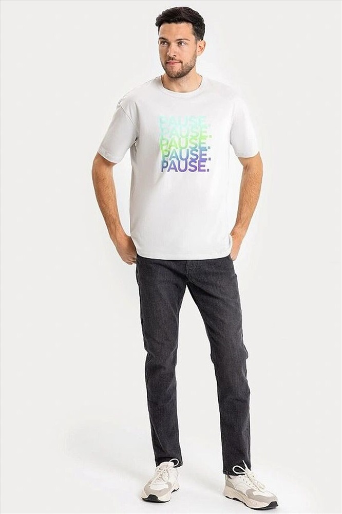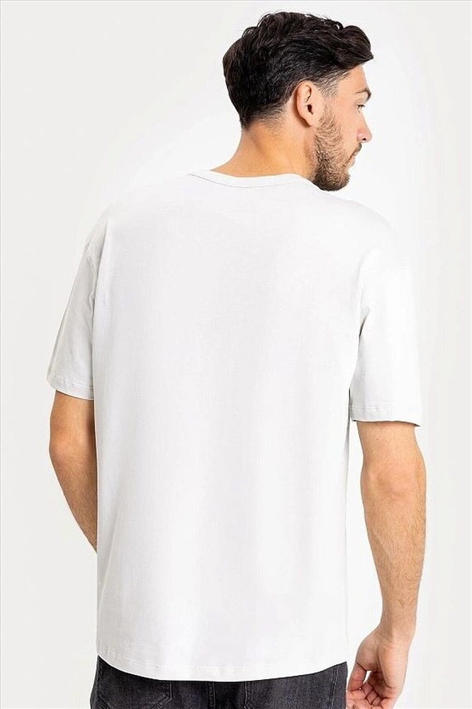 Футболка из трикотажной кулирки. Полотно полностью состоит из натурального хлопка. Футболка свободного силуэта со слегка спущенным плечом, длиной до линии бедер. Горловина круглой формы. Рукава втачные, короткие. Комфортная футболка!