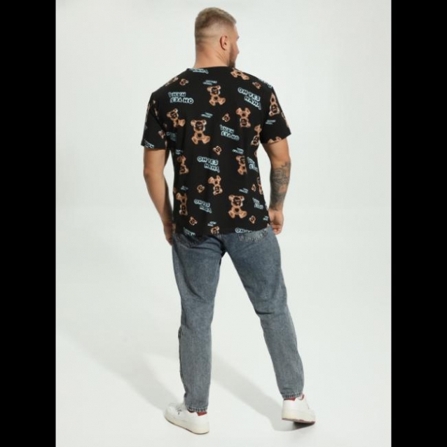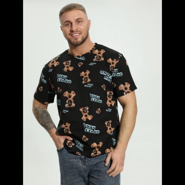 Молодежная трикотажная футболка с модным принтом. свободного кроя, с округлым вырезом горловины и коротким рукавом.