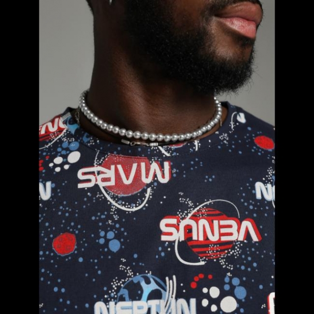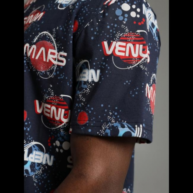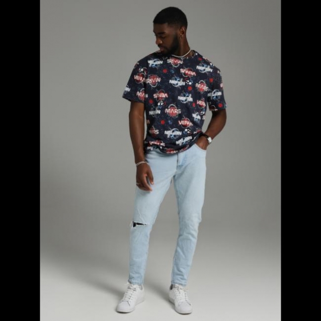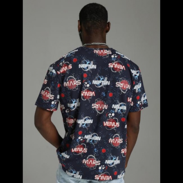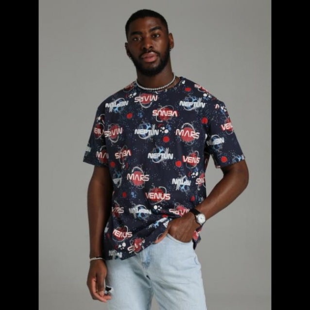 Молодежная трикотажная футболка с модным принтом. свободного кроя, с округлым вырезом горловины и коротким рукавом.