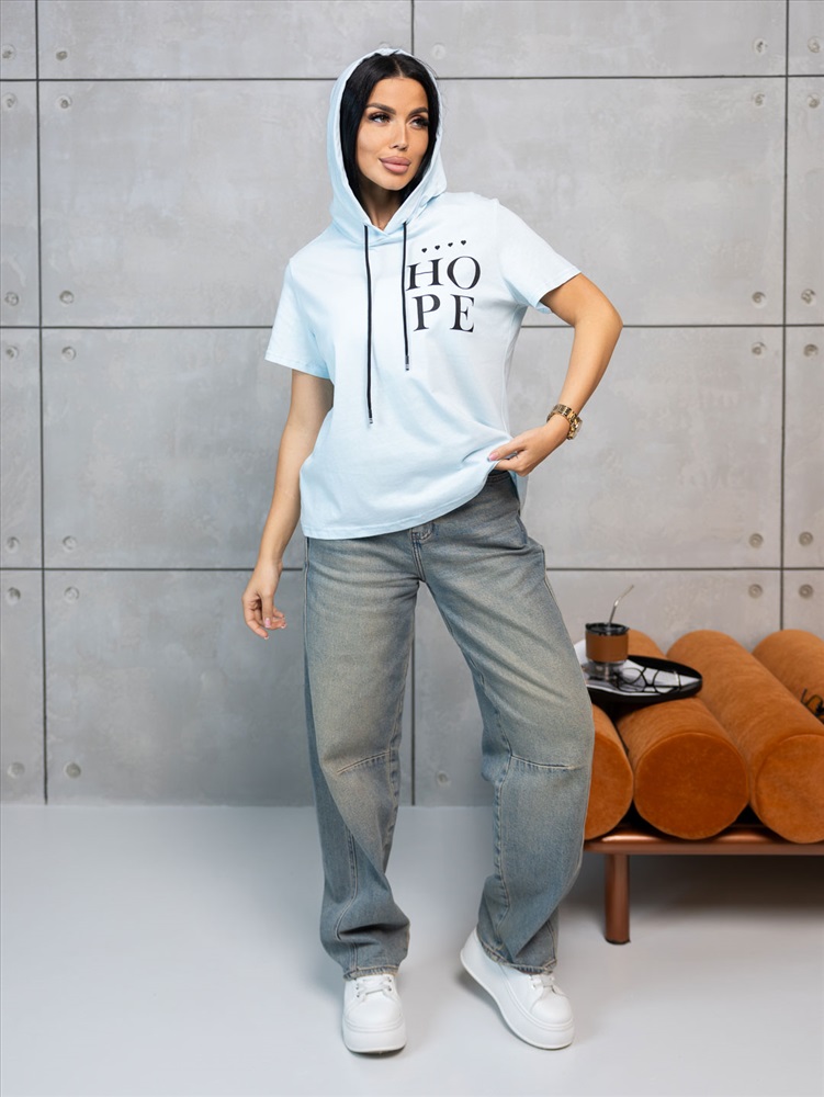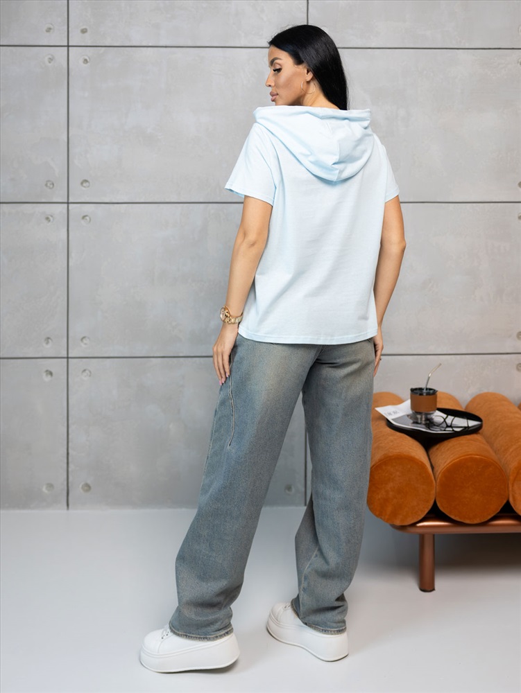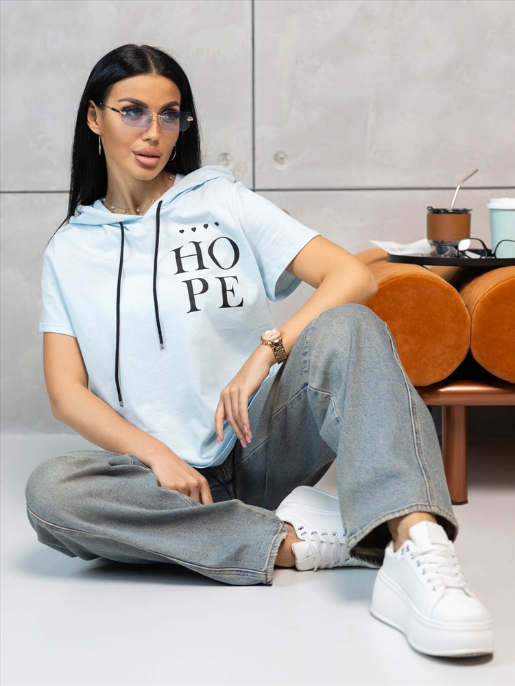 Футболка женская с капюшоном в стиле - Urban. Втачной короткий рукав и печатный рисунок на передней части.