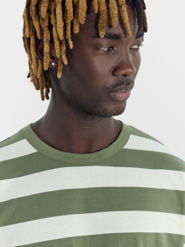 Футболка из трикотажной кулирки. Полотно полностью состоит из натурального хлопка. Футболка свободного силуэта со слегка спущенным плечом, длиной до линии бедер. Горловина круглой формы. Рукава втачные, короткие. Комфортная футболка!