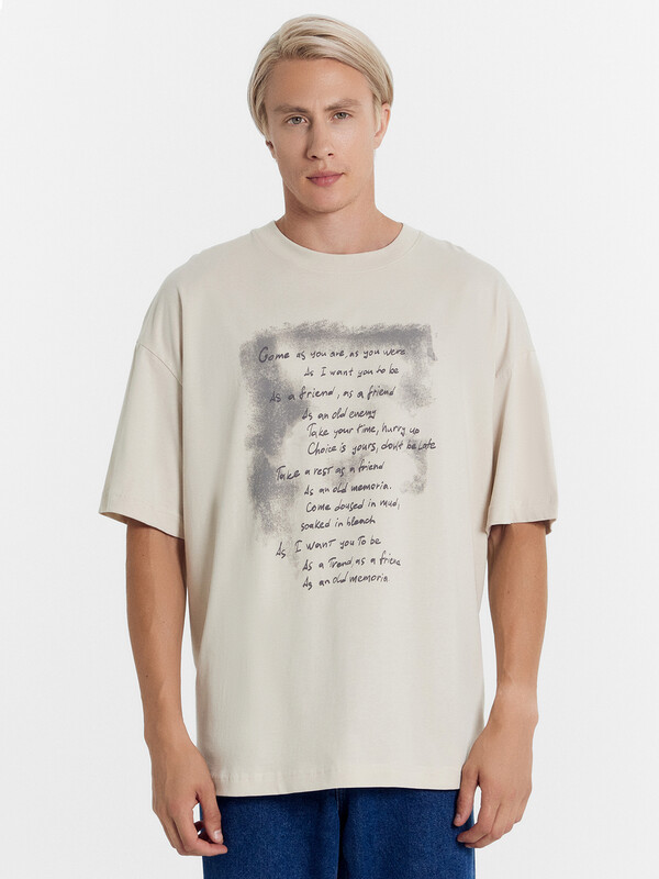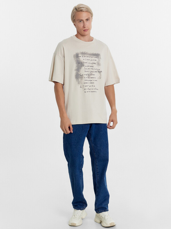Хлопковая мужская футболка из приятной к телу трикотажной кулирки. Силуэт прямой, оверсайз. Длина классическая – до линии бедер. Рукава широкие, до локтя. Спущенная линия плеча дарит особый комфорт. Рекомендуем!