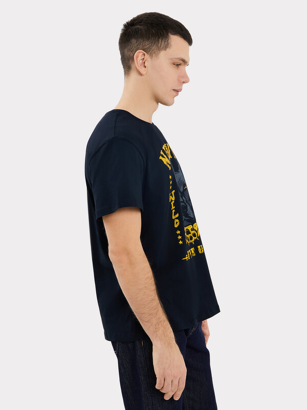 Производитель: Mark Formelle Футболка мужская свободного силуэта из трикотажного полотна кулирка. Горловина круглой формы, обтачка из рибаны. По горловине проложена отделочная строчка. Бейка по горловине спинки из кулирки. Рукав втачной, короткий.