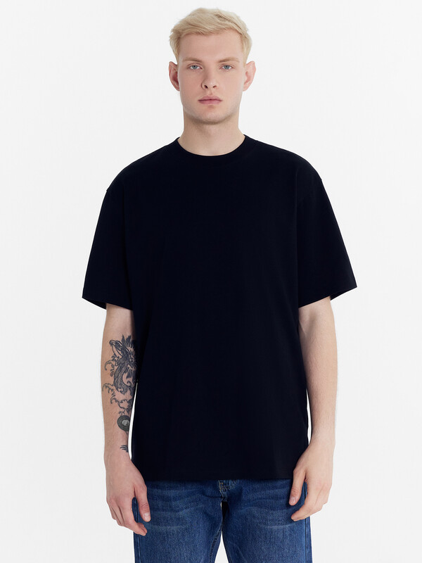 Нижние срезы футболки и рукавов обработаны швом в подгибку на