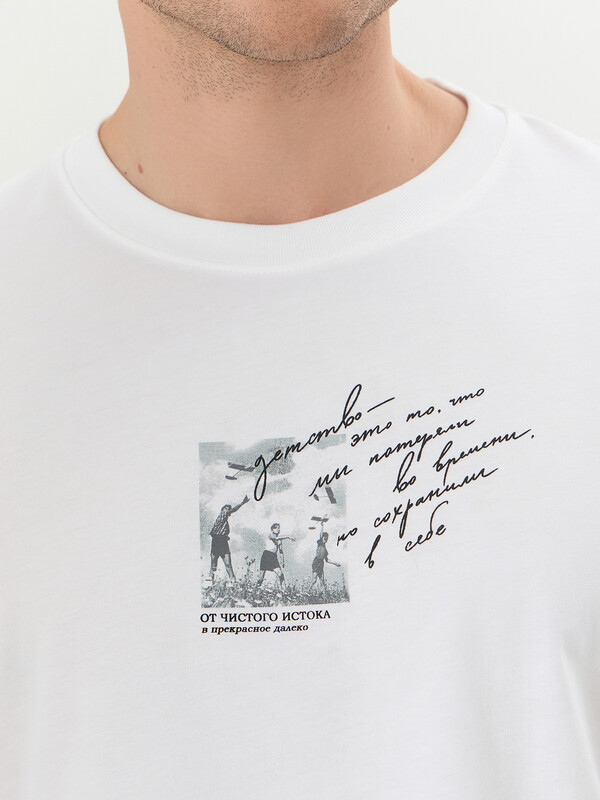 Мужская футболка — удобная и универсальная модель, идеально подходящая для повседневного гардероба. Прямой силуэт обеспечивает комфортную посадку и свободу движений, делая изделие практичным для любого случая. Горловина круглой формы оформлена обтачкой из рибаны, что добавляет эластичность и сохраняет аккуратный вид даже после многократных стирок. Спущенная линия плеча создает расслабленный и современный стиль, подчеркивая непринужденность образа. Короткие рукава делают футболку практичной и удобной, позволяя легко сочетать её с различными предметами одежды. Низ изделия и рукавов обработан швом вподгибку, обеспечивая аккуратность и долговечность модели. Футболка выполнена из трикотажной кулирки — мягкого, дышащего материала, который дарит коже комфорт и свежесть в течение всего дня. Прекрасный выбор для тех, кто ценит удобство, качество и минималистичный стиль.
