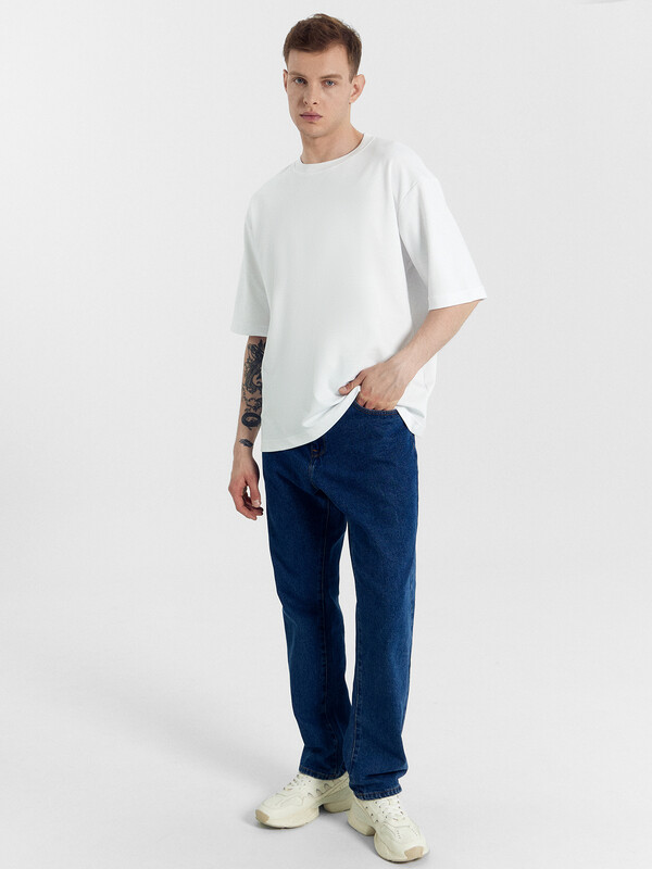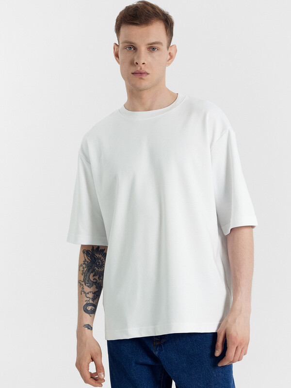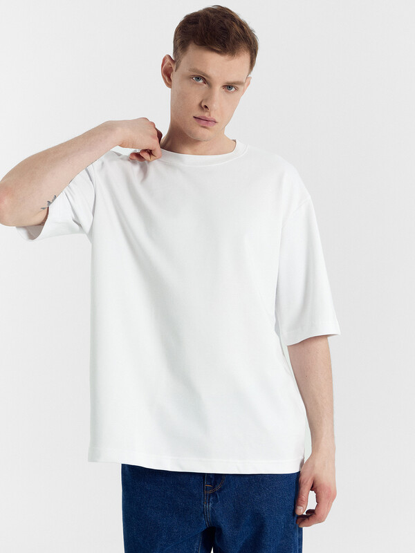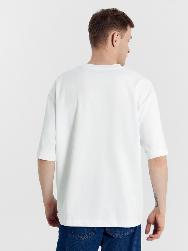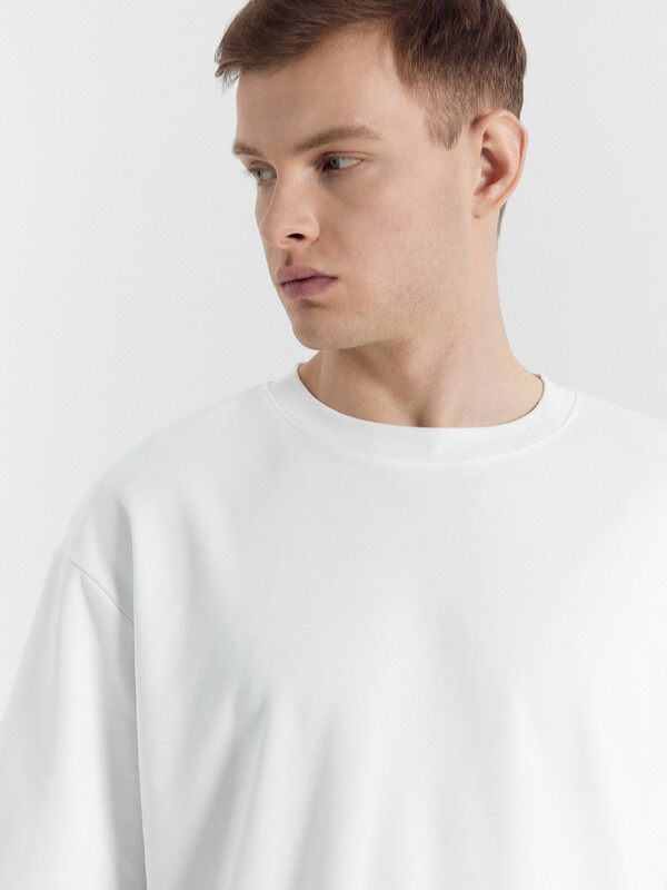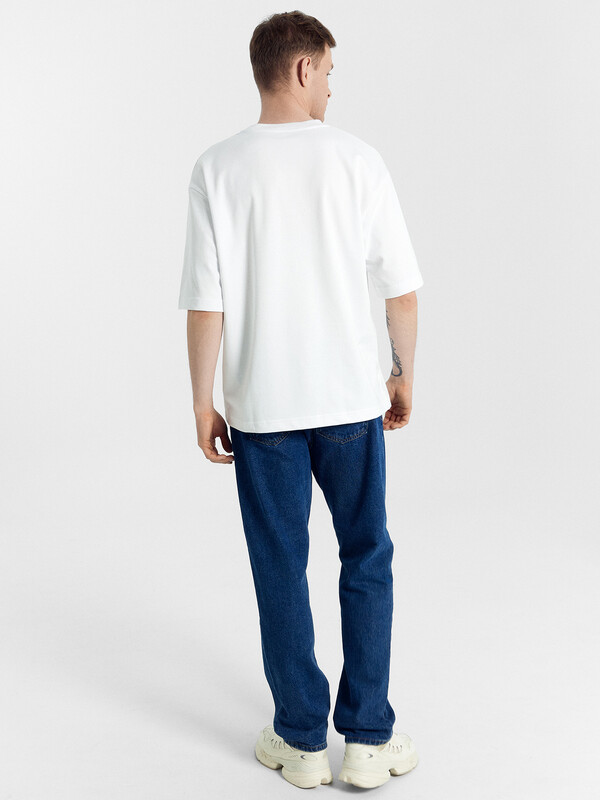 Футболка прямая, свободная. Длина до линии бедер.