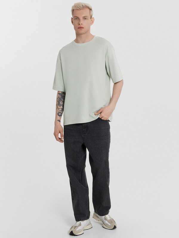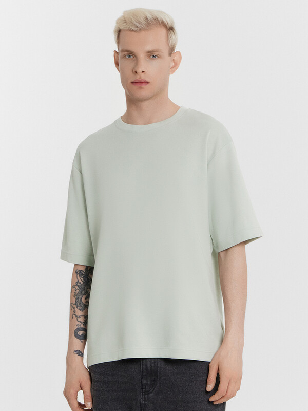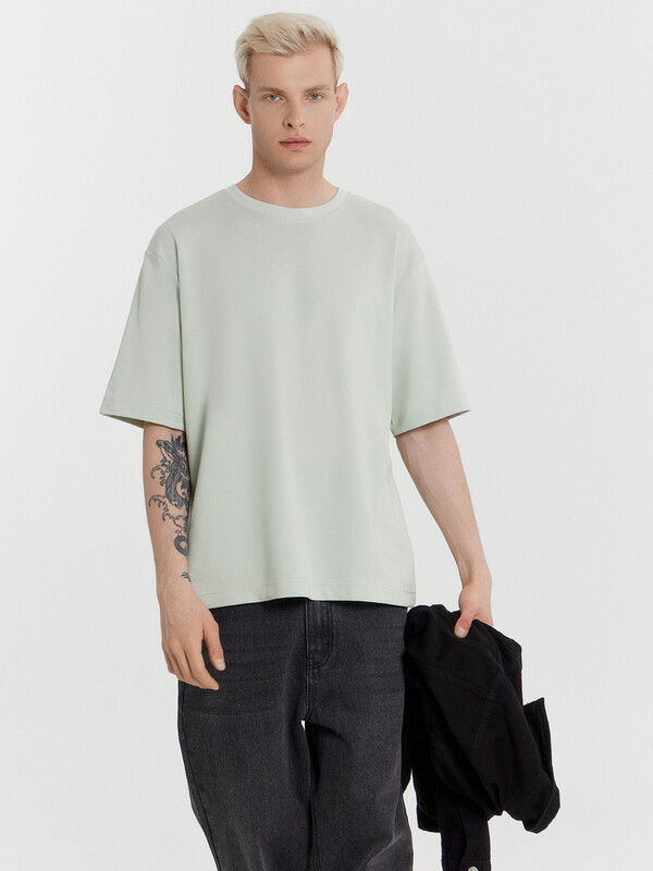 Мужская футболка из трикотажного интерлока – выбор для тех, кто ценит сочетание стиля и комфорта в повседневной одежде. Материал отличается мягкостью и приятной текстурой, обеспечивая комфорт при носке в течение всего дня. Свободный крой и круглый вырез горловины создают расслабленный и современный образ, а слегка спущенная линия плеча добавляет модели непринуждённости. Короткие рукава делают футболку практичной и универсальной, подходящей для разных случаев – от прогулок до отдыха. Этот вариант станет отличным дополнением мужского гардероба благодаря качественным материалам и стильному дизайну.