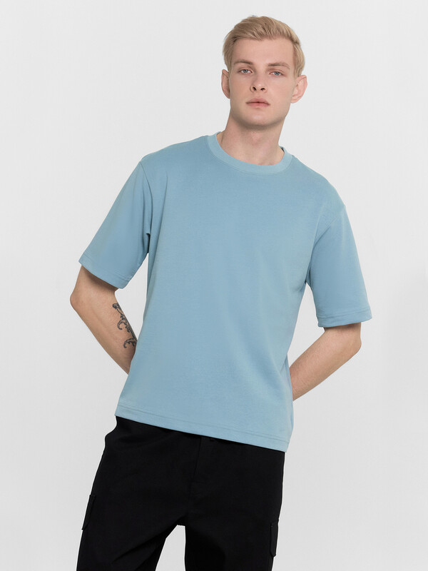 Эта мужская футболка выполнена из трикотажного материала интерлок, обеспечивающего мягкость и комфорт при носке. Модель свободного кроя с круглым вырезом горловины и слегка спущенной линией плеча создает непринужденный и стильный образ. Короткие рукава добавляют удобства и делают её идеальным выбором для повседневной носки. Прекрасный вариант для тех, кто ценит качество и комфорт в повседневной одежде!