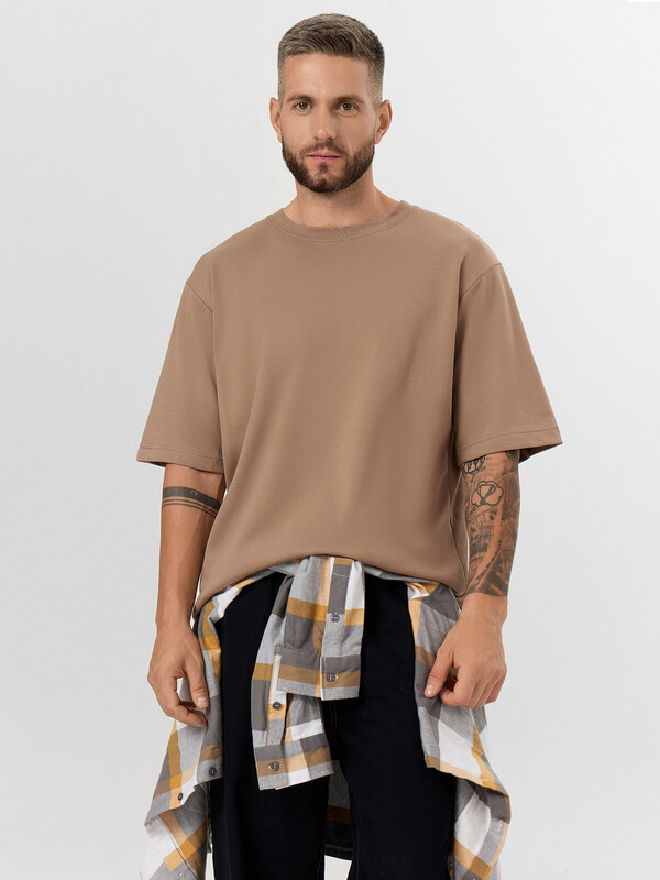 Производитель: Mark Formelle Мужская футболка из коллекции Premium Base изготовлена из высококачественного трикотажного материала интерлок, который обладает рядом преимуществ. Интерлок отличается высокой прочностью и долговечностью, а также отличной воздухопроницаемостью, что обеспечивает максимальный комфорт при носке. Модель имеет прямой и свободный силуэт, с круглой горловиной и слегка спущенными плечами, создавая стильный и современный образ. Короткие рукава и низ футболки обработаны швом вподгибку, что придает изделию аккуратный и завершенный вид. Такая модель идеально подходит для повседневного гардероба, обеспечивая комфорт и стиль в любое время года.