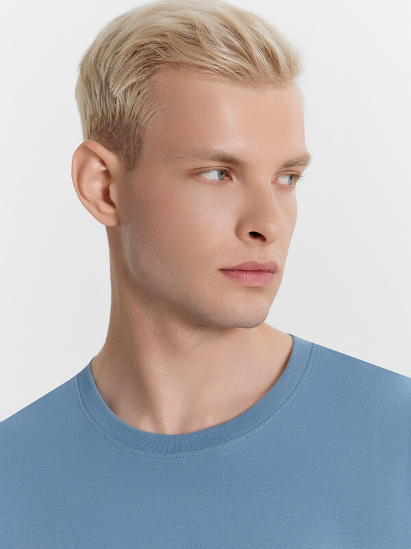 Нижние срезы футболки и рукавов обработаны швом вподгибку на 2х шовной плоскошовной машине.