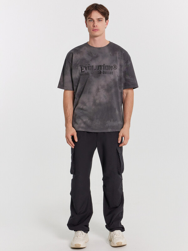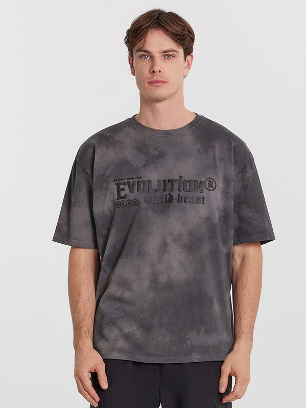 Футболка изготовлена из трикотажного полотна кулирки.Футболка прямого силуэта, оверсайз. Длиной до линии бедер. Рукава втачные короткие 2х шовные. Плечо спущено.