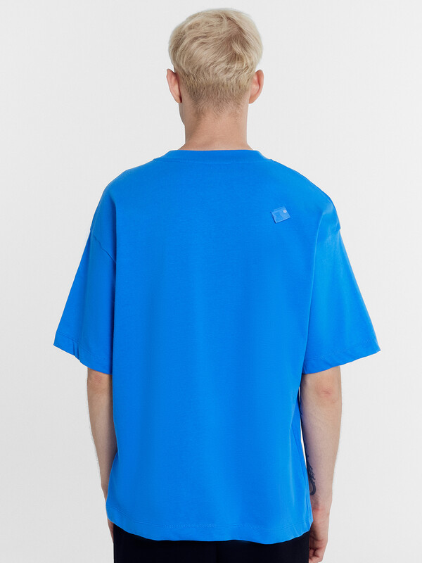 Футболка свободная, оверсайз.Горловина округлой формы обработана обтачкой из рибаны. Шов втачивания обтачки по спинке закрыт тесьмой хб.
