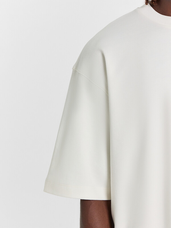 Нижние срезы футболки и рукавов обработаны швом вподгибку на 2х игольной плоскошовной машине.