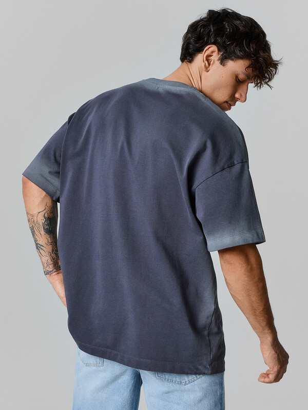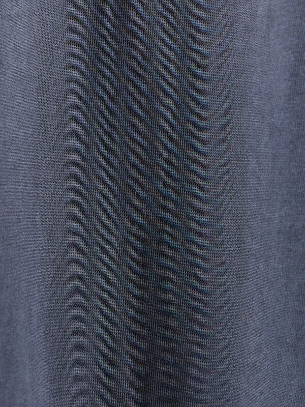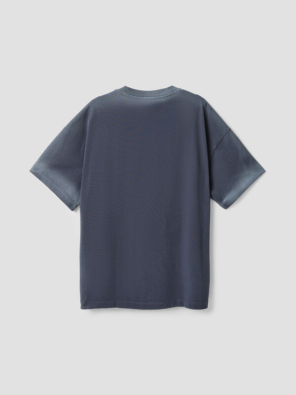 Футболка прямого силуэта. Горловина округлой формы обработана обтачкой из рибаны. Шов втачивания обтачки по спинке закрыт бейкой из основного полотна. Рукава втачные, корткие. Линия плеча слегка спущена.Нижние срезы футболки и рукавов обработаны швом вподгибку.
