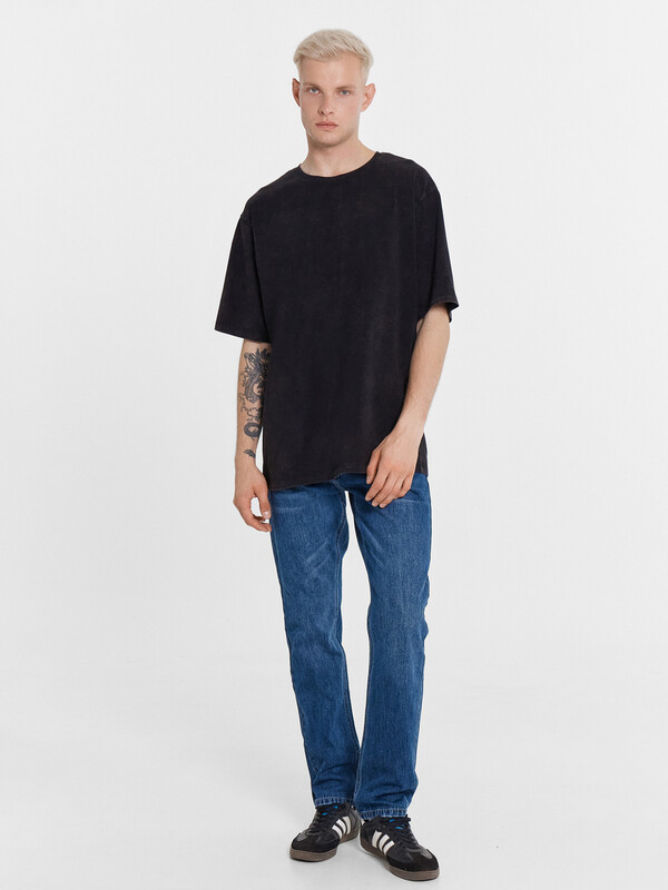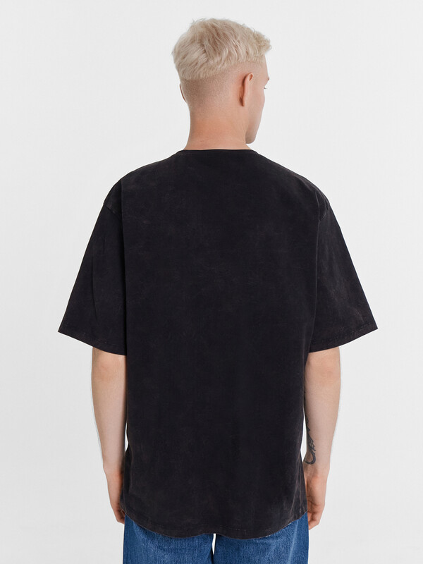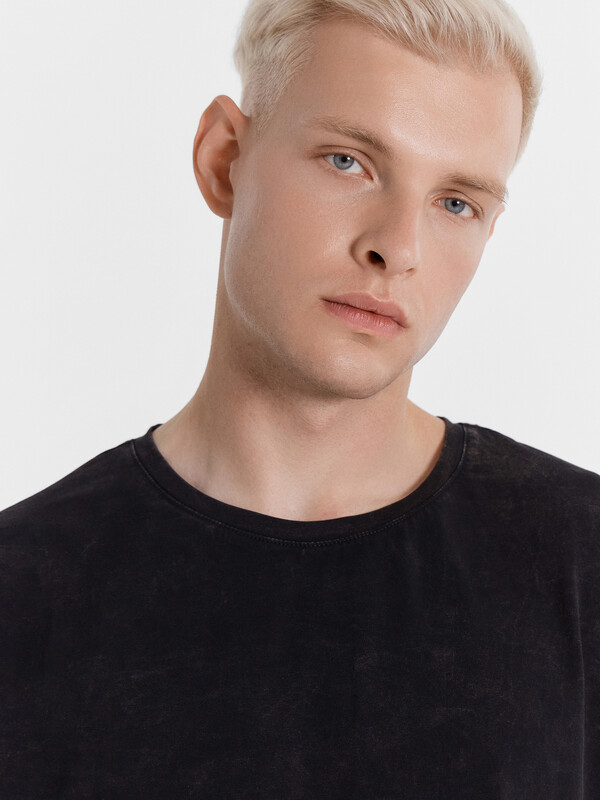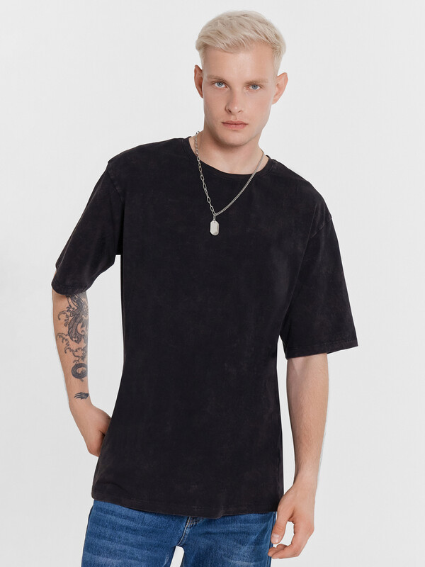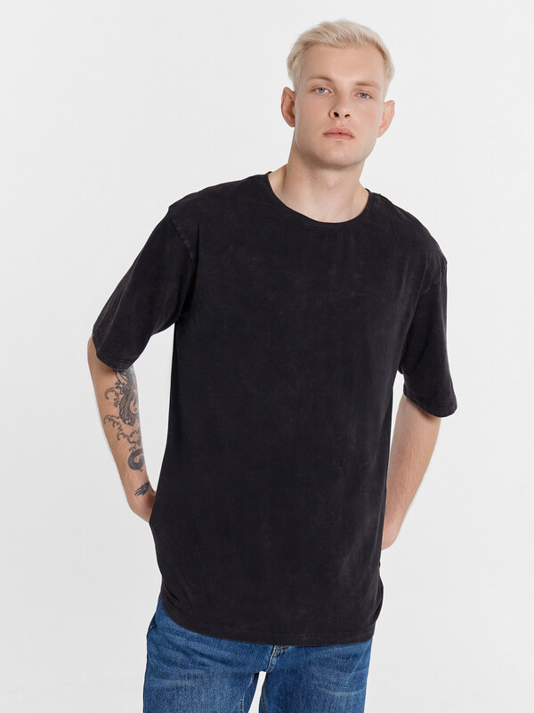 Футболка свободного силуэта. Перед и спинка цельнокроеные.Горловина круглой