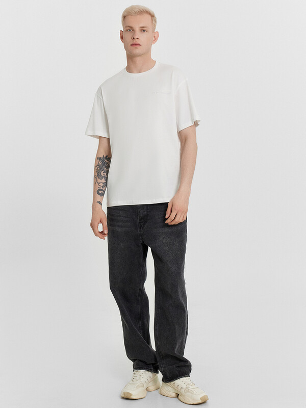 Производитель: Mark Formelle Стильная мужская футболка свободного кроя, выполненная из хлопковой кулирки. Этот материал отличается мягкостью, дышащими свойствами и гипоаллергенностью, что делает модель особенно комфортной для ежедневного ношения. Футболка с круглой горловиной и короткими рукавами со спущенной линией плеча обеспечивает максимальную свободу движений и удобство. Она станет отличным дополнением вашего гардероба, сочетая в себе комфорт, стиль и высокое качество.