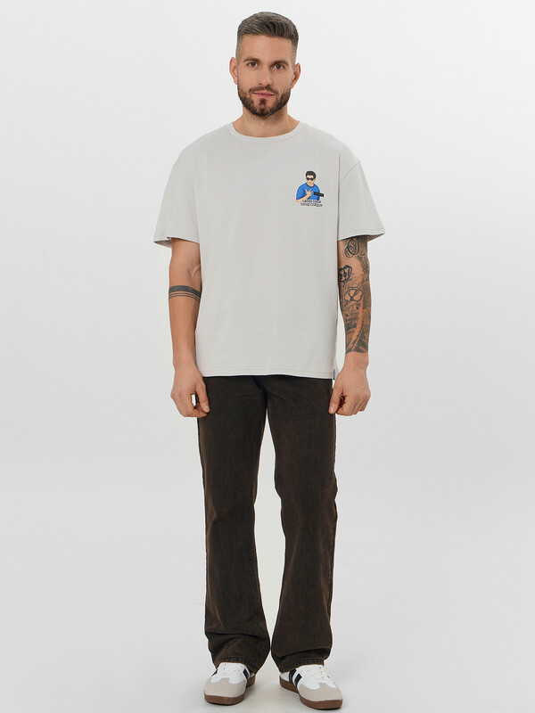 Стильная мужская футболка свободного кроя, выполненная из хлопковой кулирки. Этот материал отличается мягкостью, дышащими свойствами и гипоаллергенностью, что делает модель особенно комфортной для ежедневного ношения. Футболка с круглой горловиной и короткими рукавами со спущенной линией плеча обеспечивает максимальную свободу движений и удобство. Она станет отличным дополнением вашего гардероба, сочетая в себе комфорт, стиль и высокое качество.