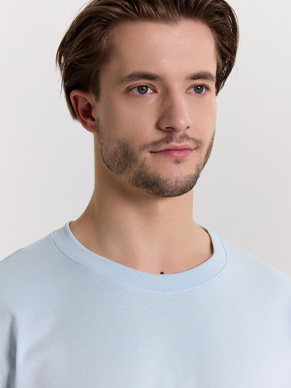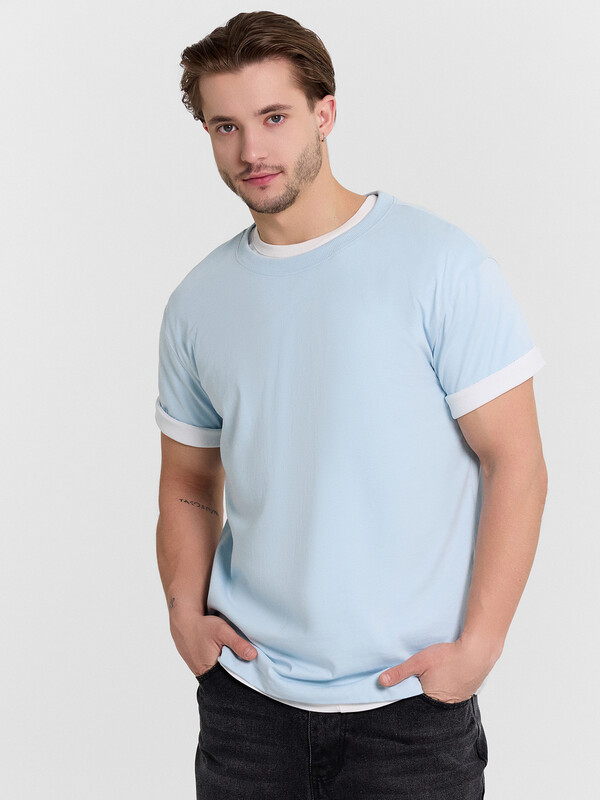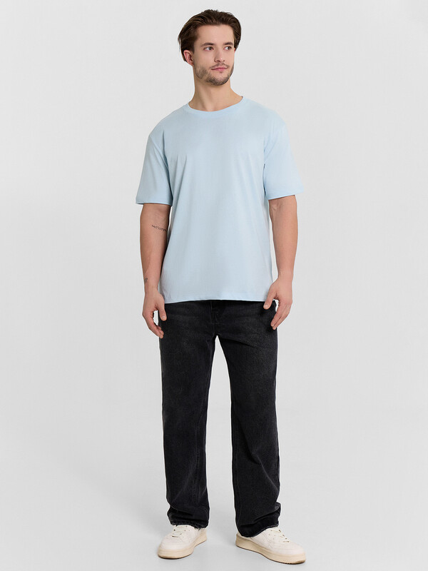 Футболка прямая свободная. Горловина округлой формы окантована бейкой в 4 сложения из рибаны. Горловина отстрочена на двухигольной плоскошовной машине.Плечо слегка спущено. Рукава втачные короткие. Низ футболки и рукавов обработан швом вподгибку. 100% хлопок Комментарии к товару