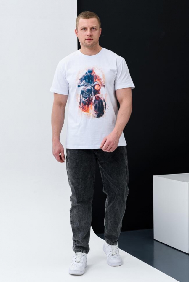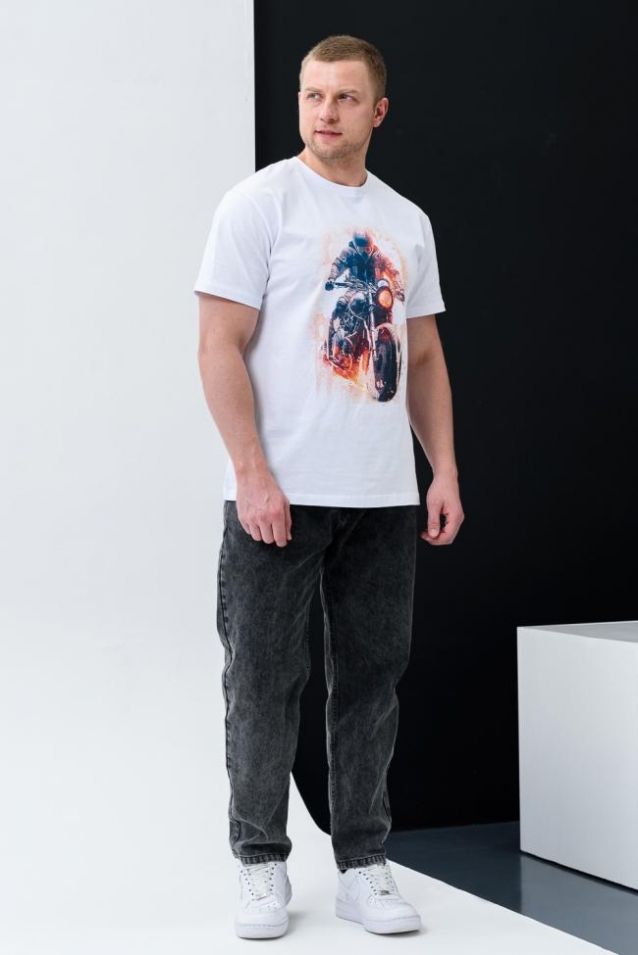 Футболка прямая, свободная, средней длины, с округлой горловиной. Рукав короткий. Горловина обработана эластичной обтачкой.