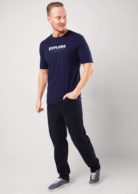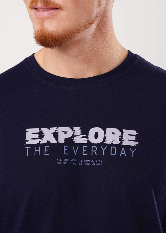Производитель: ЭЙС Фуфайка с коротким рукавом среднего объема, с оригинальным принтом, круглым вырезом горловины, которая оформлена обтачкой из рибаны.
