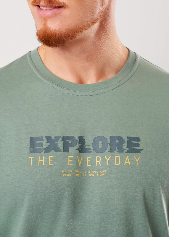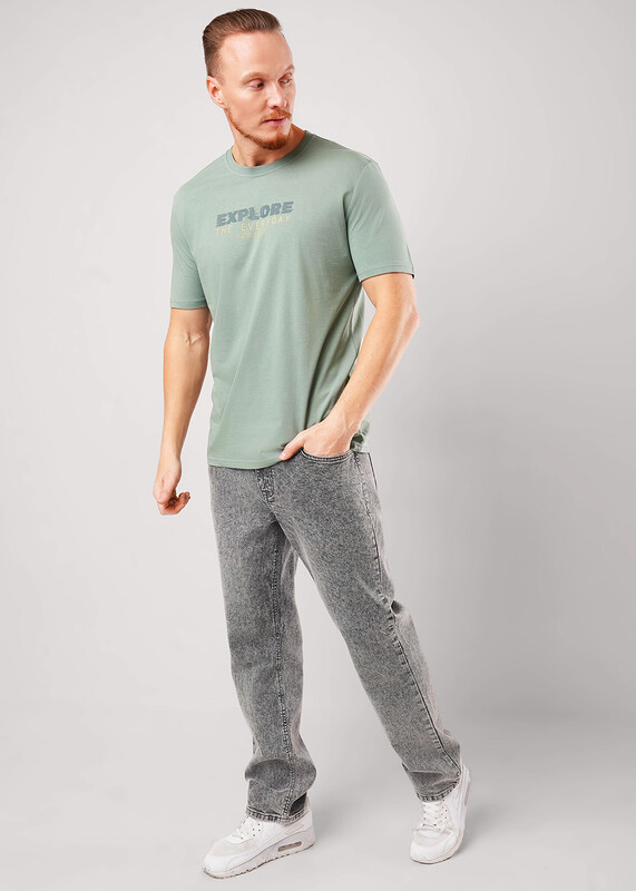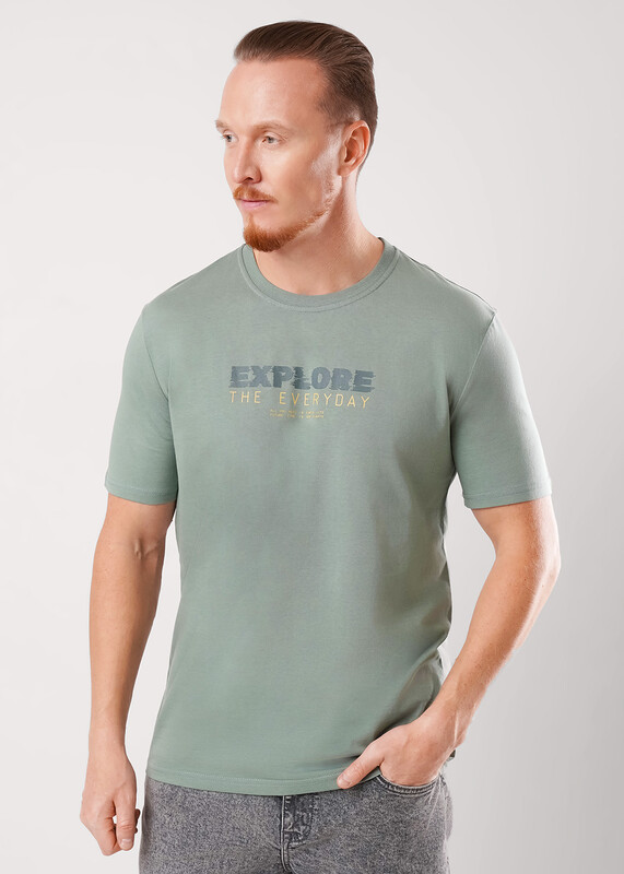 Производитель: ЭЙС Фуфайка с коротким рукавом среднего объема, с оригинальным принтом, круглым вырезом горловины, которая оформлена обтачкой из рибаны.