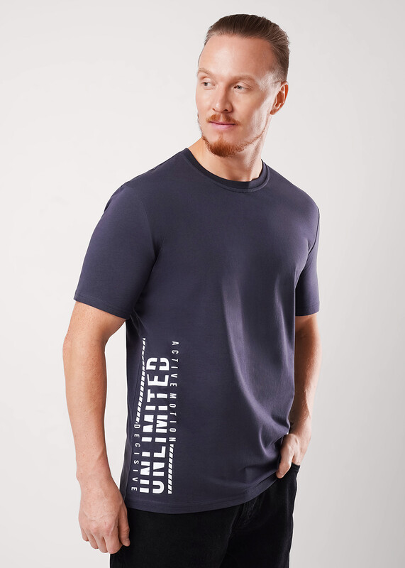 Производитель: ЭЙС Фуфайка с коротким рукавом среднего объема, с оригинальным принтом, круглым вырезом горловины, которая оформлена обтачкой из рибаны.