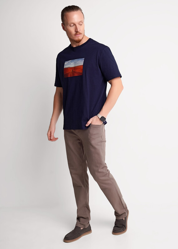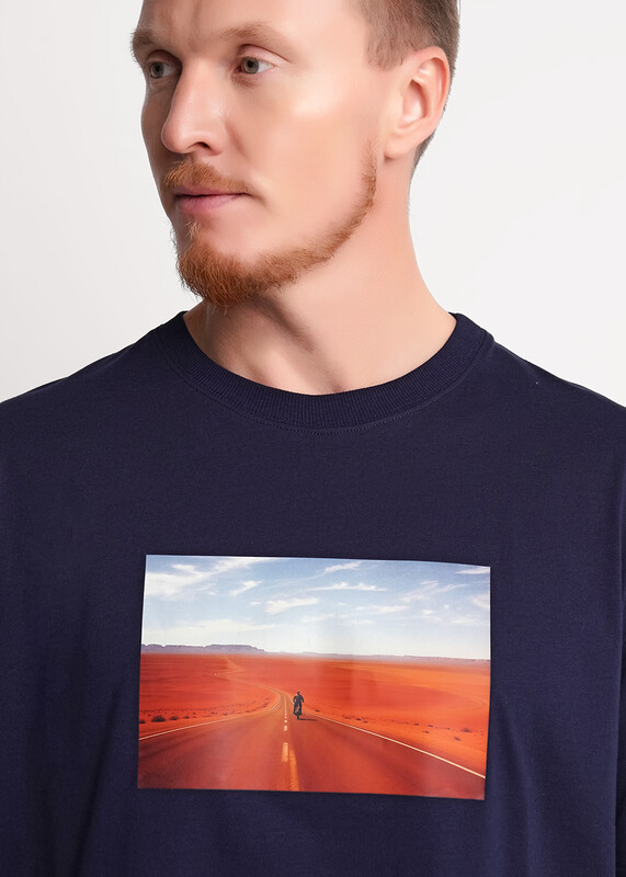 Стильная мужская футболка из трикотажа с 100% хлопковым составом. Модель с круглым вырезом горловины и коротким рукавом, дополнена фотографичным принтом, что придает ей оригинальности. Изделие подойдет для активных прогулок и встреч.