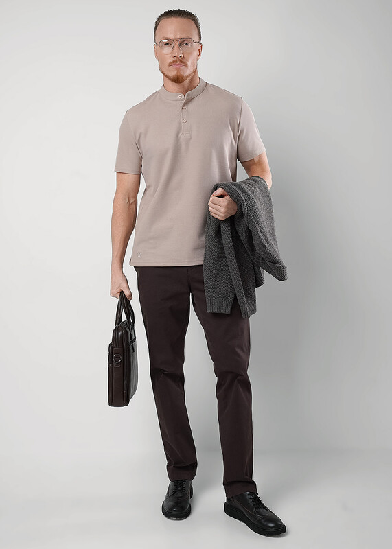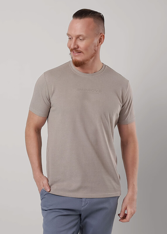 Футболка мужская с круглым вырезом горловины и коротким втачным рукавом из фактурного полотна пике. Изделие дополняет имиджевым принтом. Подойдет к любым брюкам или джинсам.